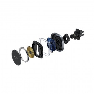 A tartó precízen illeszkedő légkondicionáló nyílás klipsze és a rendkívül erős integrált mágnesek biztosítják, hogy telefonja stabilan tartson még a legkevésbé sima útfelületen is. Az AirMag kialakítását az egyszerű, egykezes kezelhetőség jegyében tervezték: a telefon felhelyezése és levétele pillanatok alatt, minimális erőfeszítéssel elvégezhető, így nem vonja el a figyelmét a vezetésről. A szellőzőrácsra történő rögzítés optimális elhelyezést tesz lehetővé, nem takarja ki a kilátást.
