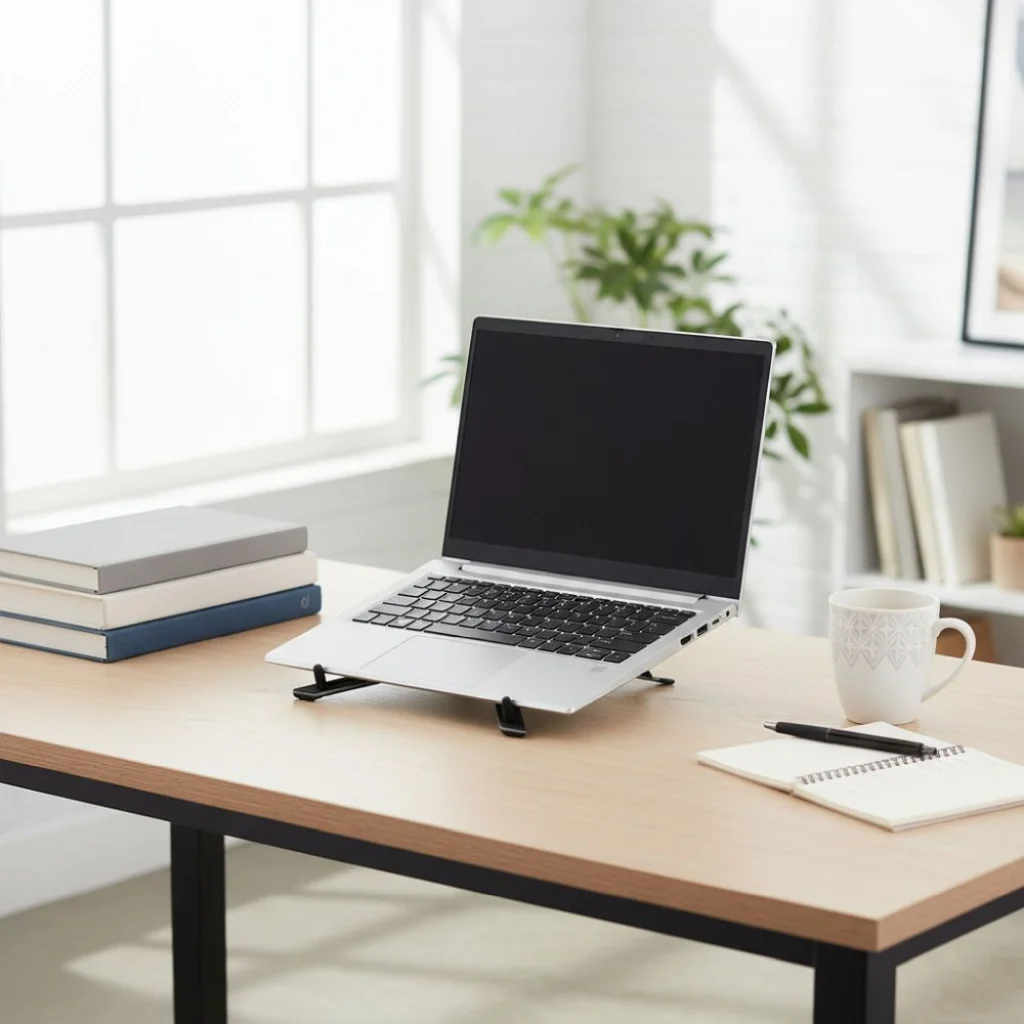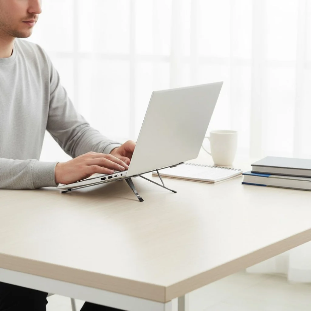 Erős szerkezet és stabilitás. Az állványt kiváló minőségű anyagokból készítették: alumínium, POM és csúszásgátló szilikon. Ez a kombináció biztosítja a merevséget és megakadályozza, hogy az eszköz elcsússzon vagy megkarcolódjon. Legfeljebb 1 kg teherbíró képességgel, biztonságosan támogathatja a legtöbb népszerű laptop modellt vagy nagyobb táblagépeket.