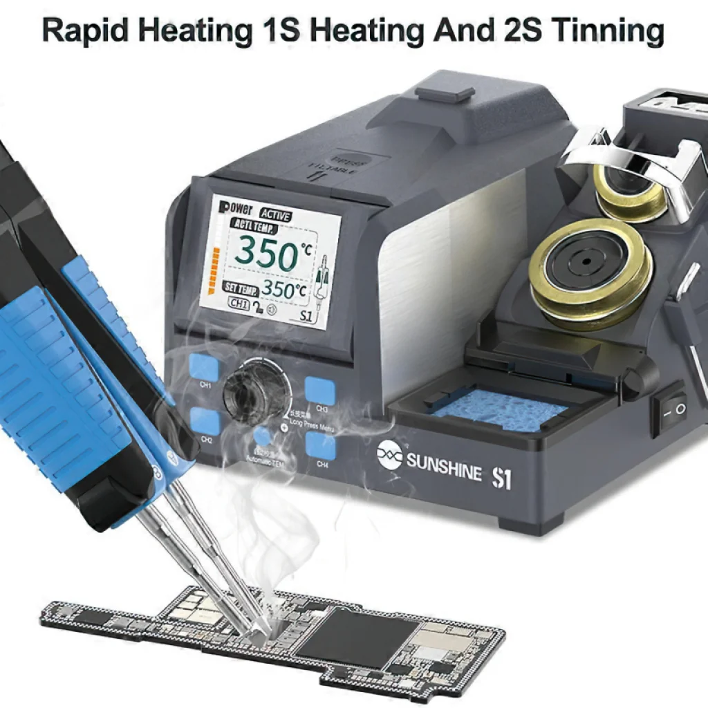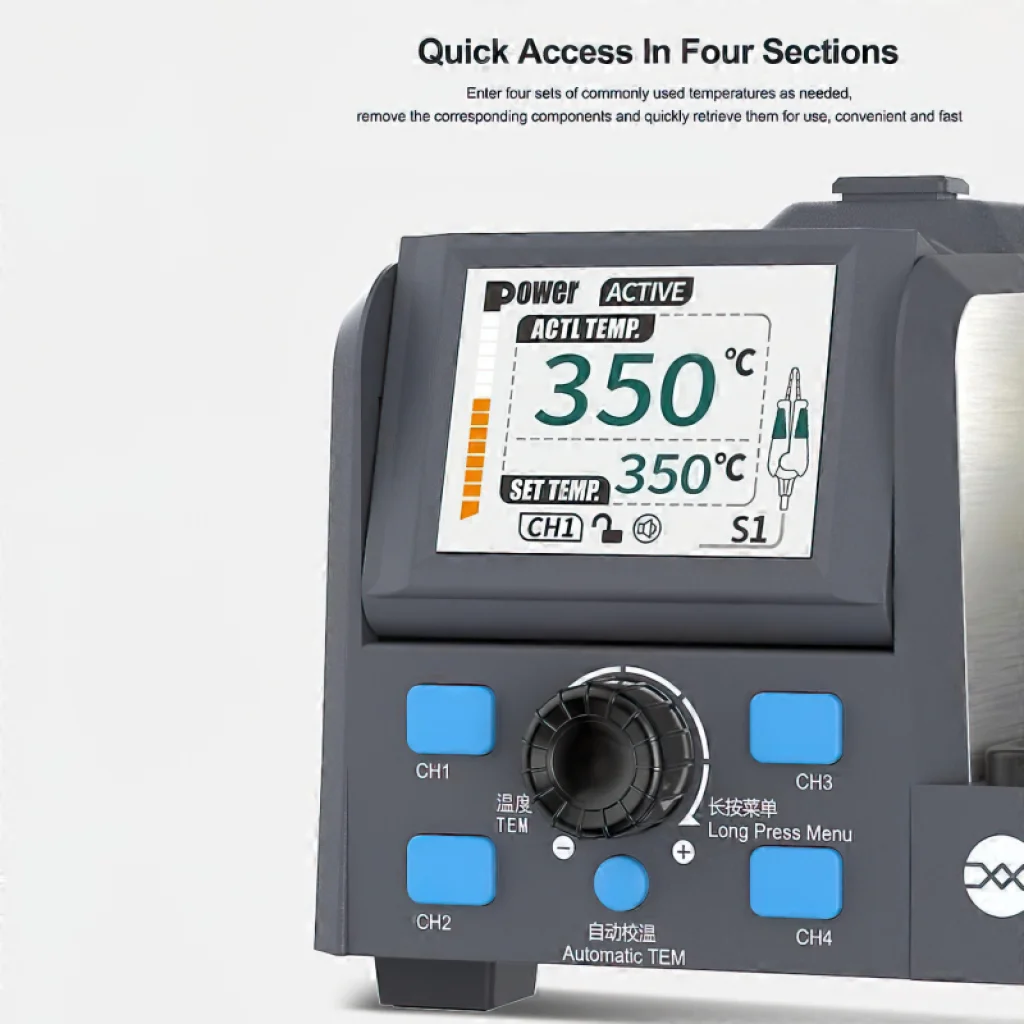 A Sunshine S1 Forrasztóállomás magas teljesítményt nyújt elektronikai javításokhoz, ideális kis és nagy precizitású alkatrészek kiforrasztásához, gyors felfűtéssel mindössze 2 másodperc alatt. A teljes színű dinamikus kijelző, amely állítható dőlésszöggel rendelkezik, tiszta megtekintést és intuitív kezelhetőséget biztosít, míg az intelligens automatikus hőmérséklet-beállító mód hatékony és biztonságos munkafolyamatot garantál. Az állomás gyors hozzáférést nyújt négy gyakran használt hőmérséklet-beállításhoz, megkönnyítve az alkatrészek eltávolítását és újrafelhasználását. Többfunkciós vezérléssel, amely egy kattintással állítható, a Sunshine S1 könnyű használatot ötvöz a modern javítóműhelyekben szükséges precizitással és hatékonysággal.