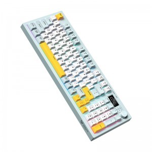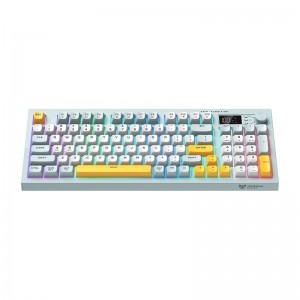 Az ONIKUMA G80 egy multifunkciós játékbillentyűzet, amely a legmodernebb technológiát színes, szemet gyönyörködtető dizájnnal ötvözi. A billentyűzet 94 billentyűvel ellátott elrendezést és három csatlakozási módot kínál - Bluetooth 5.0, 2,4 GHz-es sáv és vezetékes (USB-C-n keresztül). Hosszú üzemidő, funkcionális multimédiás tárcsa és beépített OLED (Organic Light Emitting Diode, nagy kontrasztú, alacsony energiafogyasztású LED-kijelző) képernyő is jellemzi. Mindezek miatt a G80 nemcsak játékra, hanem munkára és mindennapi használatra is tökéletes!