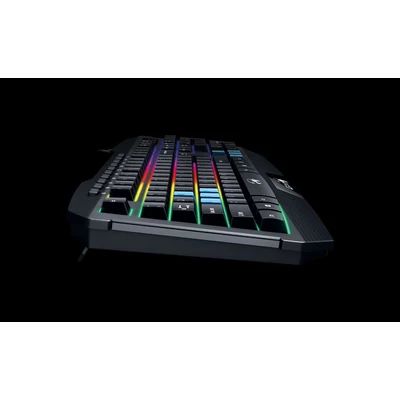 - Dinamikus szivárvány háttérvilágítás: A GX-SCORPION K215 élénk, szivárvány színű háttérvilágítással rendelkezik, amely minden billentyűt ragyogóvá tesz, és még a sötétben is jól láthatóvá teszi a karaktereket. A világítás nemcsak esztétikus, hanem segít a koncentrációban is, elmerítve a játékosokat a virtuális világban. A WASD és a nyílbillentyűk különleges kiemelése extra stratégiai előnyt biztosít a gyors és pontos irányításhoz.