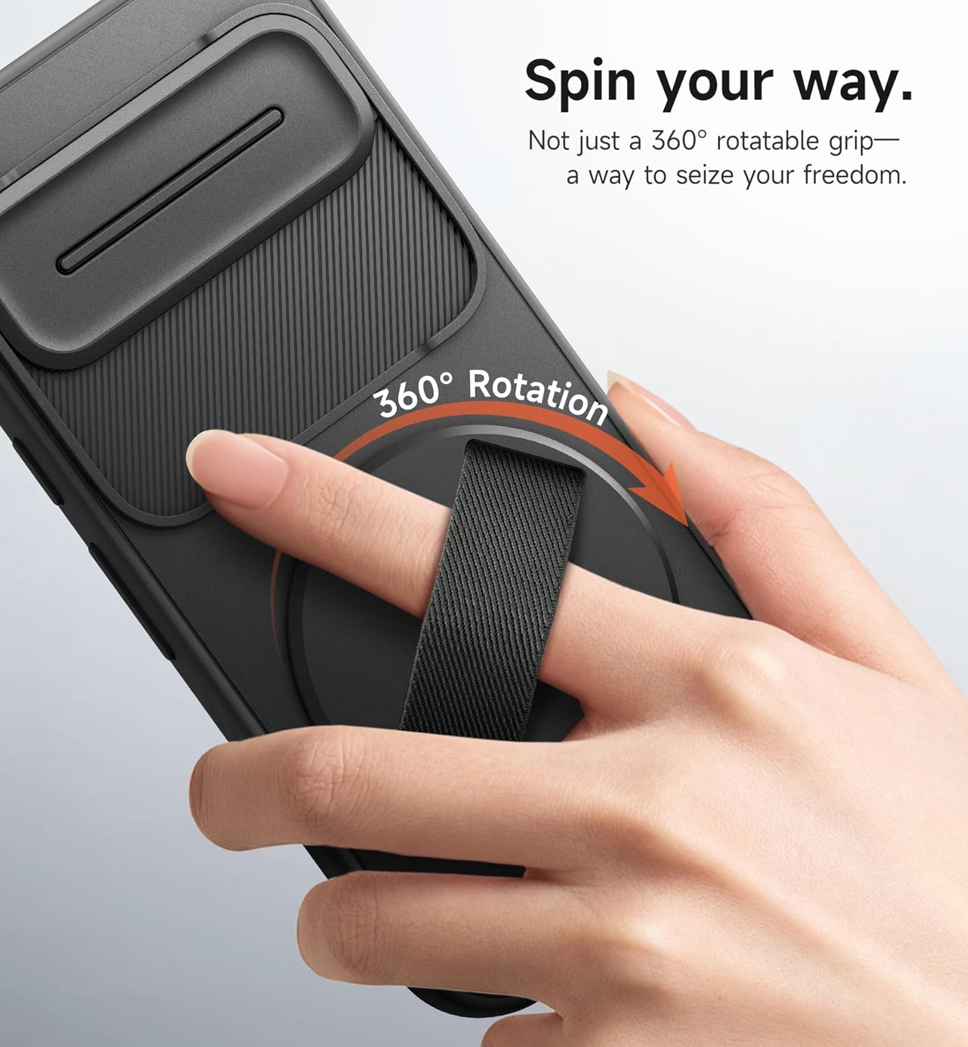 Ez a tok több, mint egy egyszerű védelmi eszköz – egy életérzés. A beépített, 360°-ban forgatható gyűrűs markolat soha nem látott szabadságot kínál. Könnyedén tarthatja telefonját hívások, szelfik készítése vagy akár egy kávé elfogyasztása közben is, garantálva a biztos fogást. A gyűrű rendkívül strapabíró: tesztek szerint akár 20+ kg súlyt is képes megtartani, így bármilyen húzásnak vagy csavarásnak ellenáll, biztonságban tartva telefonját.
