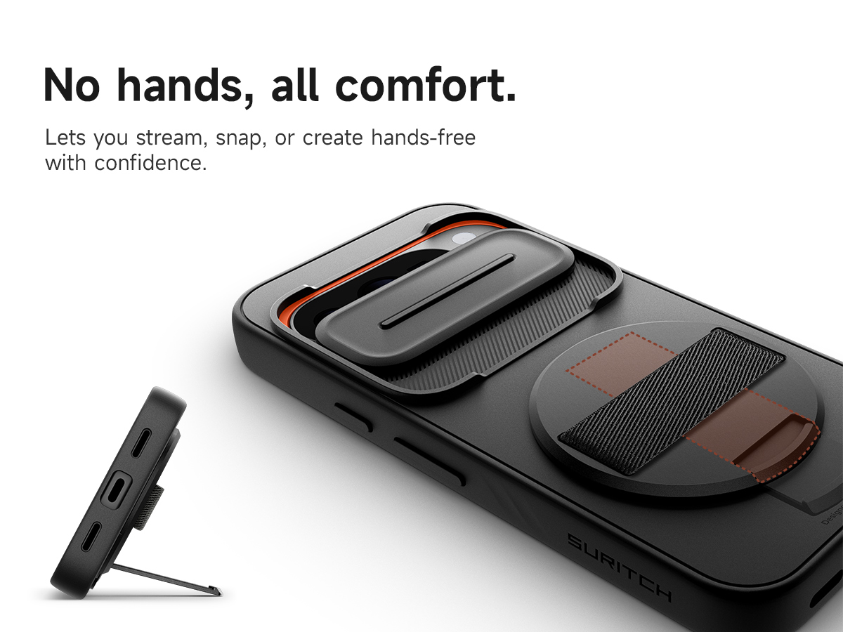 Ez a SURITCH tok tökéletes társ a mindennapokban, lehetővé téve, hogy magabiztosan streameljen, fotózzon vagy tartalmat hozzon létre, anélkül, hogy a telefont folyamatosan a kezében kellene tartania. Élvezze a maximális kényelmet és a gondtalan használatot, legyen szó hívásokról, szelfikről vagy egyszerűen csak a kedvenc videói nézéséről.