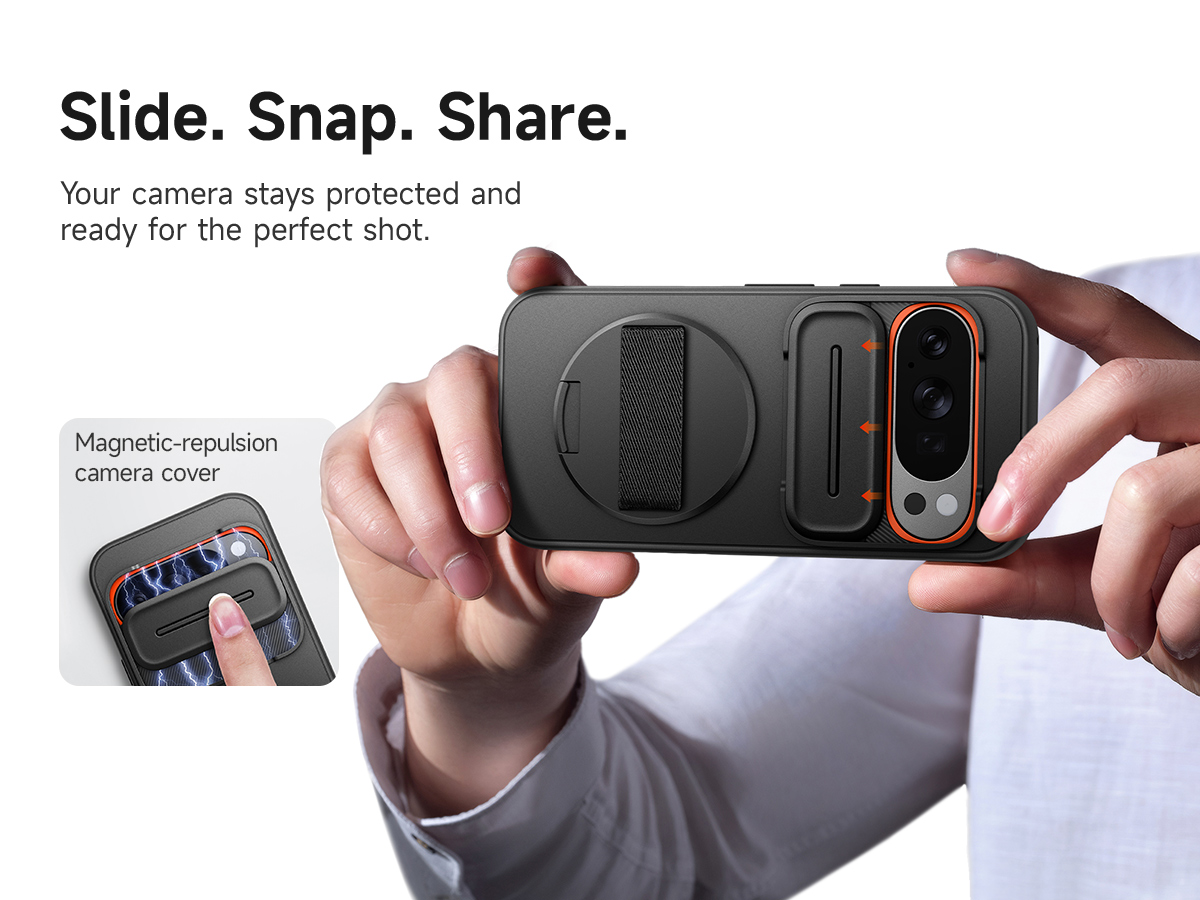 Védje meg Google Pixel 10 Pro XL készüléke kiemelkedő kameráját az egyedi, mágneses elven működő csúszó kamerafedéllel. Egyetlen gyors mozdulattal előkészítheti lencséjét a tökéletes felvételhez, majd visszacsúsztatva megóvhatja a karcolásoktól, portól és a magánszféra illetéktelen bepillantásaitól, amikor épp nem használja. Készítsen, pillanatok alatt ossza meg!