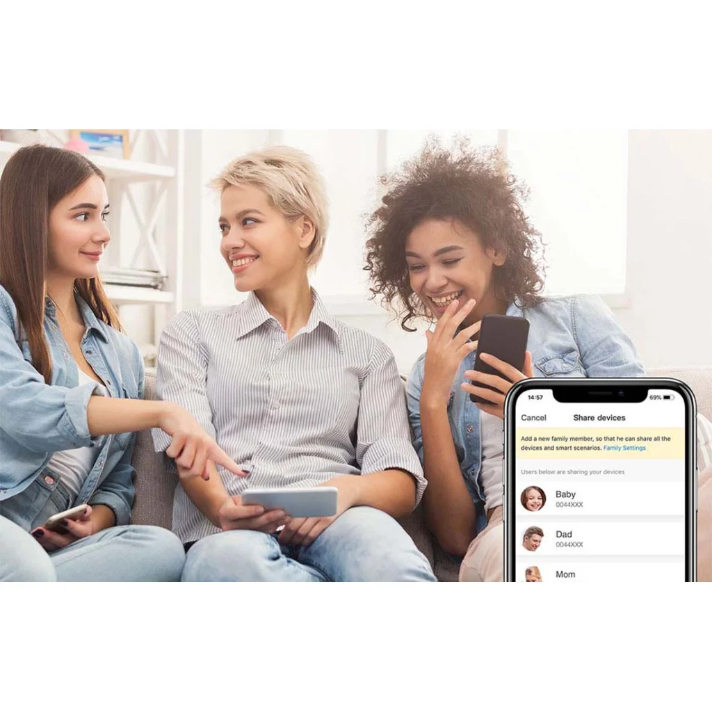 Családja vagy barátai is kényelmesen irányíthatják okosotthonát. Ha szeretné, ossza meg a kiválasztott barátai konnektorait és csatlakoztatott eszközeit az alkalmazásban! Így ők is képesek lesznek távolról működtetni a készülékeket, nyomon követni az energiafogyasztást és ütemterveket készíteni. A Gosund segítségével könnyedén barátságos hellyé teheti otthonát az egész család számára!