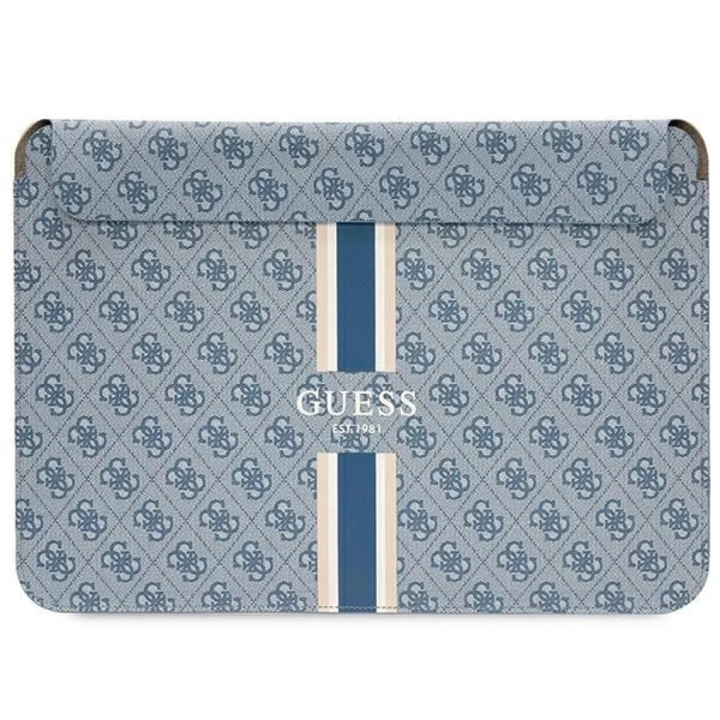 A 4G Printed Stripes kollekció kiváló minőségét a Saffiano műbőrre helyezett jellegzetes 4G logó is megerősíti - rendkívül tartós, ellenáll a sérüléseknek és a torzulásoknak. A nyomtatott Guess logó egy jellegzetes szíjra van helyezve, melynek színei tökéletesen illenek a tok stílusához. A 4G elemek számos kollekcióban jelen vannak a neves márka változatos módjain. Kiváló választás azok számára, akik funkcionális és exkluzív laptop tokot keresnek, amely egyben divatos kiegészítője is a mindennapi öltözködésnek. A 4G Printed Stripes laptop tok kényelmes mágneses zárral záródik.