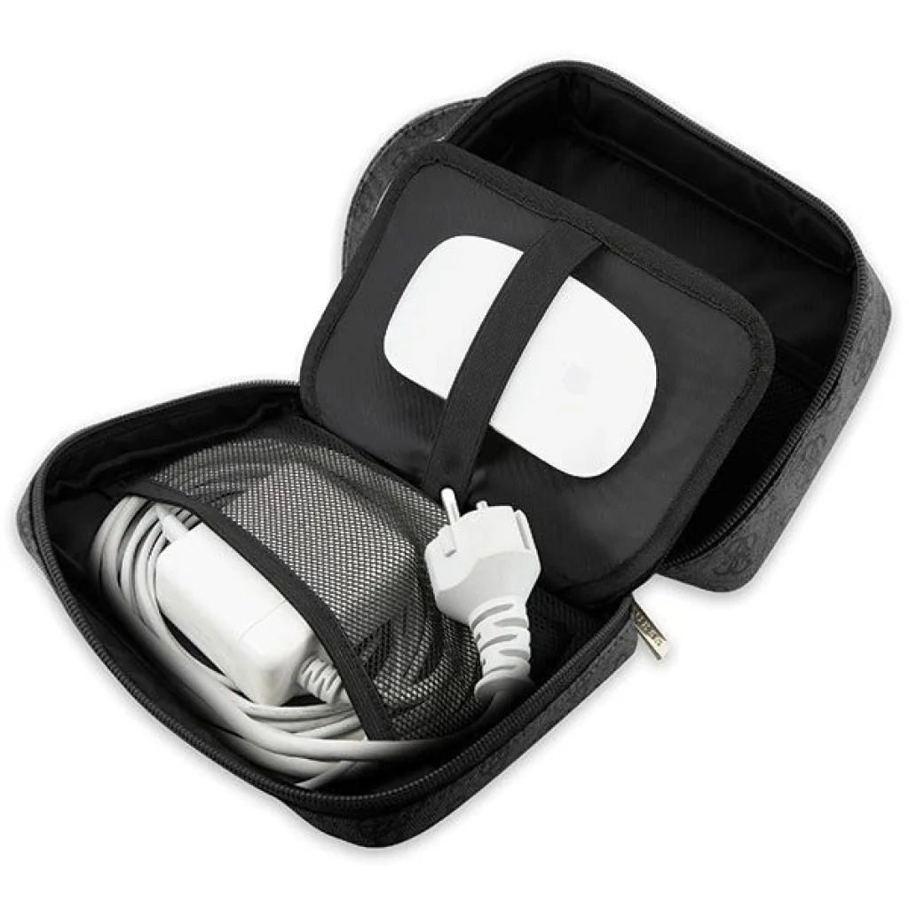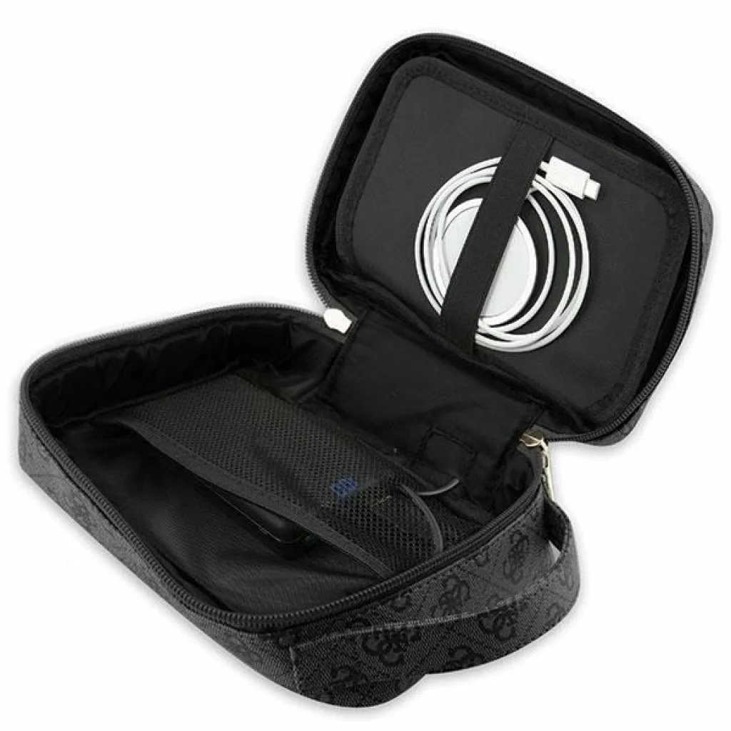 A táska belseje rendkívül funkcionális - számos rekesz lehetővé teszi a szükséges kis kiegészítők kényelmes tárolását. A táskának van egy külső portja, amely USB-csatlakozóval végződik, és a táska belsejében egy USB-csatlakozóval végződő kábel található. A táska nagyon kényelmes, praktikus fogantyúval van felszerelve, amely lehetővé teszi, hogy csuklóra akaszd vagy kézben tartsd. A terméket a Guess licenc alapján gyártották.