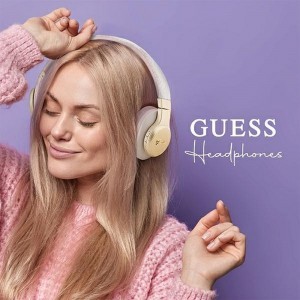 A fejhallgatókat a klasszikus 4G motívum díszíti, amelyet a neves Guess divatház több projektjében ismerhetünk. A magas minőségű ökológiai bőr textúráján lévő 4G nyomat fényt és szépséget kölcsönöz a teljes struktúrának, vonzza az emberek figyelmét és rendkívül luxus megjelenést biztosít. A fejhallgatók befejezése nagyon finom, ami különlegesen esztétikussá teszi őket. Az fülkagylók külső része arany anyaggal van borítva, amely gyönyörűen kontrasztál a 4G nyomattal, és egy nagy vintage Guess logóval van ellátva a felületen. A Guess logó igazolja a termék legmagasabb minőségét és hitelességét.