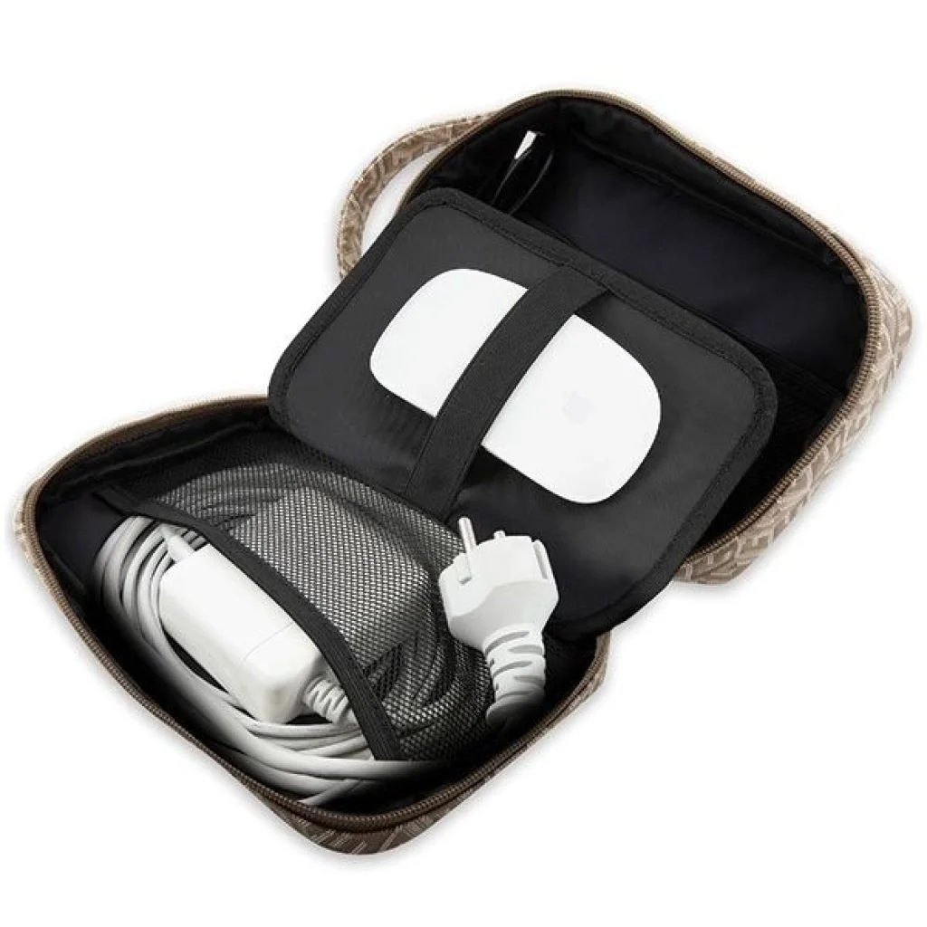 A Guess GCube Stripe kollekció egy rendkívül stílusos és ízléses kézitáska szervező gyűjtemény, amelyet azok számára terveztek, akiknek szükségük van egy kiegészítőre, amely elegendő helyet biztosít mindennapi szükséges tárgyaik tárolásához, miközben divatos megjelenésre vágynak. A Guess divatház által aláírt G Cube kollekció a legmagasabb minőségi kivitelezés és egyedi dizájn garanciája. A kollekciót a legmagasabb minőségű G Cube nyomtatás díszíti, ami tökéletes választás azok számára, akik az exkluzív megjelenést és a designer kiegészítőket értékelik. A Guess divatházra jellemző G Cube motívum egy nagyon keresett minta, amely közvetlenül a márka legújabb kollekcióiból származik. Az alsó szíjon elhelyezett nagy Guess logó, amely ellentétben áll a tok többi részével, kiemeli a kollekció elitizmusát, gyönyörű díszítés és egyben megerősíti a kollekció kiváló minőségét és eredetiségét. A táska belseje rendkívül funkcionális - számos rekesz lehetővé teszi a szükséges apró kiegészítők kényelmes tárolását. A táska külső porttal rendelkezik USB csatlakozóval, a táska belsejében pedig egy USB csatlakozós kábel található. A táska egy nagyon kényelmes, praktikus fogantyúval van felszerelve, amely lehetővé teszi, hogy csuklóra akassza, vagy kézben tartsa. A terméket a Guess licence alapján gyártották.