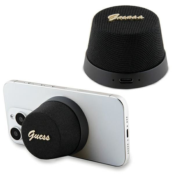 A Guess Magnetic Script Metal Logó Bluetooth Hangszóró tökéletes hangzást nyújt kis méretei mögött. Minden hang, ami a hangszóróból kijön, lenyűgöz a kiváló minőségével és tisztaságával, ezért a magas színvonalú hangzás ámulatba ejti Önt. A készülékből áradó zene mélysége olyan, mintha egy csak Önnek szóló koncertet hallgatna. Ha olyan hangszóróra van szüksége, amely lehetővé teszi, hogy elmerüljön a zene világában, ahol minden hang valódi élményt nyújt a minőségi zene szerelmeseinek, felejthetetlen hangélményt biztosítva, és hangok gazdagságával tölti meg a szobát - akkor a Guess Magnetic Script Metal hangszóró az ideális választás. Érdemes megjegyezni, hogy a készülék kis méretű, így szinte bárhová magával viheti. Szeretne zenét hallgatni a konyhában vacsorakészítés közben, vagy szüksége van egy további hangforrásra kempingezéskor? Esetleg egy extra hangszóróra lenne szüksége egy találkozó során? A kis méret és az ultrakönnyű súly lehetővé teszi, hogy bármikor és bárhol használhassa ezt az eszközt. Vezeték nélküli csatlakozás Csatlakoztassa eszközét a Guess hangszóróhoz néhány pillanat alatt. Ez egy egyszerű és élvezetes élmény. Csak nyomja meg a hangszóró bekapcsológombját, kapcsolja be Bluetooth funkcióval rendelkező telefonját, válassza ki ezt a hangszórót az elérhető eszközök listájából, és kattintson a csatlakozásra - és máris élvezheti a vezeték nélküli hangzást szinte azonnal. A hangszóró kellemes hanggal jelzi, hogy a kapcsolat készen áll a használatra. GRP funkció Mindannyian tudjuk, hogy a zene még jobban szól, ha megoszthatjuk másokkal. Ezért a Guess még tovább fokozza a hangzást a TWS (True Wireless Stereo) funkciónak köszönhetően. Kapcsoljon be két hangszórót, párosítsa őket egymással, és merüljön el a körülölelő hang mélységeiben. Ez elképesztő, amikor még mélyebben elmerülhet a zenében, és minden hangot még mélyebben érezhet. Könnyű töltés Felejtse el az aggodalmat a hangszóró élettartama miatt. A beépített 1200 mAh akkumulátornak köszönhetően hangszórója hosszú órákig kész a zenelejátszásra. A töltés ugyanolyan egyszerű, mint a hangszóró használata. Csatlakoztassa az USB-C kábelt a hangszóró hátuljára, és egy LED jelzőfény tájékoztatja, amikor a készülék feltöltődött és készen áll a használatra. Mostantól megszakítás nélkül élvezheti a zenét, és a hangszóró stílusos kialakítása bármely helyiség díszévé válik. A hangszóró lehetővé teszi, hogy a telefont MagSafe technológiával szerelje fel, amely nem károsítja a készülék felhasználójának értékes okostelefonját. Ezen kívül a MagSafe technológia alkalmazása ebben a tartóban biztosítja a készülék stabil és biztonságos tartását, így nem kell aggódnia amiatt, hogy a hangszóró véletlenül leválik. Ennek az innovatív rögzítési módnak a használatával biztos lehet benne, hogy mindig a helyén marad. Érdemes megjegyezni, hogy ennek a rögzítésnek köszönhetően a hangszóró a telefon támaszaként is funkcionálhat. Termék a Guess licenszével gyártva. Technikai adatok Kommunikáció Bluetooth 5.3 Bluetooth hatótávolság akár 10 m Munkafrekvencia 120Hz - 20KHz Bemeneti feszültség DC 5V Érzékenység 112±3 dB Impedancia 32 ohm±15% Hangszóró teljesítmény 3W Akkumulátor kapacitás 1200 mAh Töltőport USB-C Töltési idő akár 2 óra Lejátszási idő akár 12 óra Funkciók Bluetooth, TWS Méretek 60 x 60 x 40 mm Szín Fekete