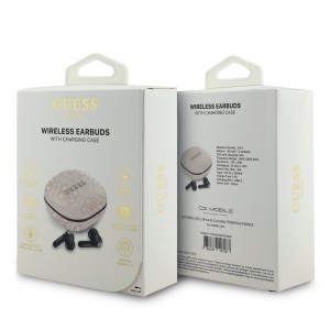 • Stílusos töltőtok: Az elegáns Guess logóval ellátott töltőtok nemcsak megvédi a fülhallgatókat, hanem teljesen feltöltve is tartja őket. A tok kompakt, így könnyen elfér a zsebben vagy a táskában.
