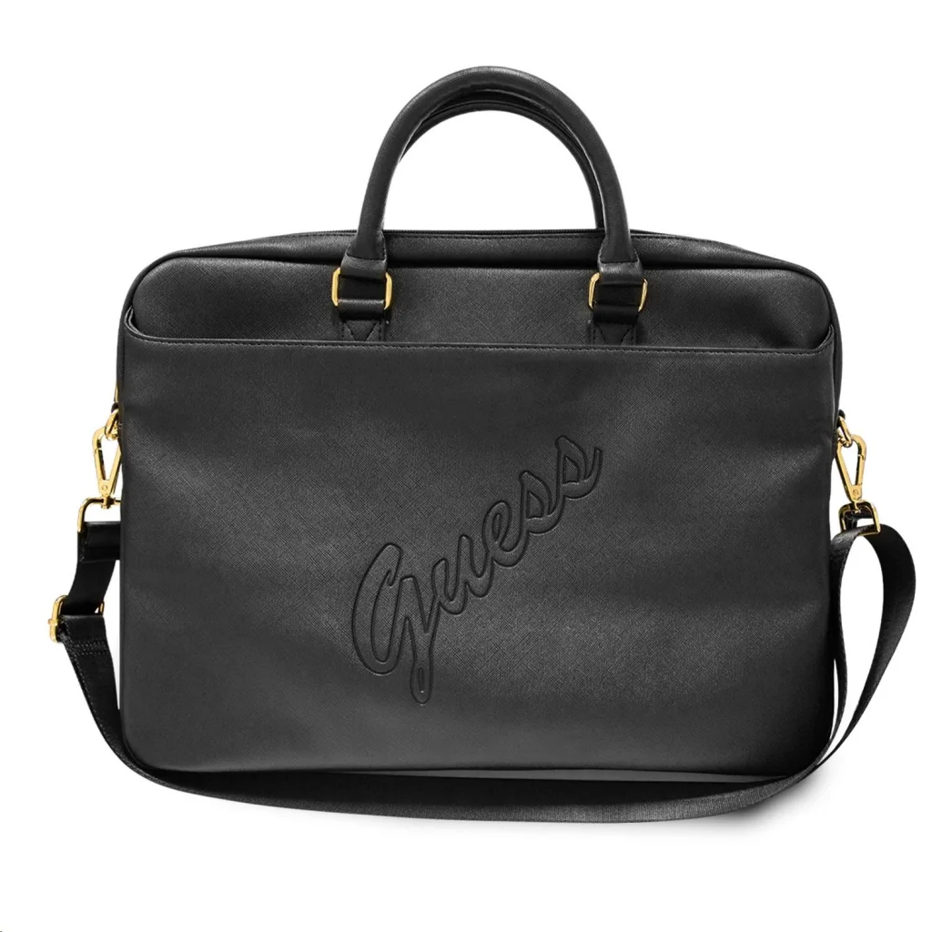 Termék leírás Eredeti Guess márkájú laptop táska 15 - 16" méretig Prémium minőségű környezetbarát bőr anyaghasználattal Vintage Script kollekció díszítéssel Belső felületén puha anyaghasználattal Anyaghasználatából fakadóan felületen csillogó illetve nem teljesen sima!