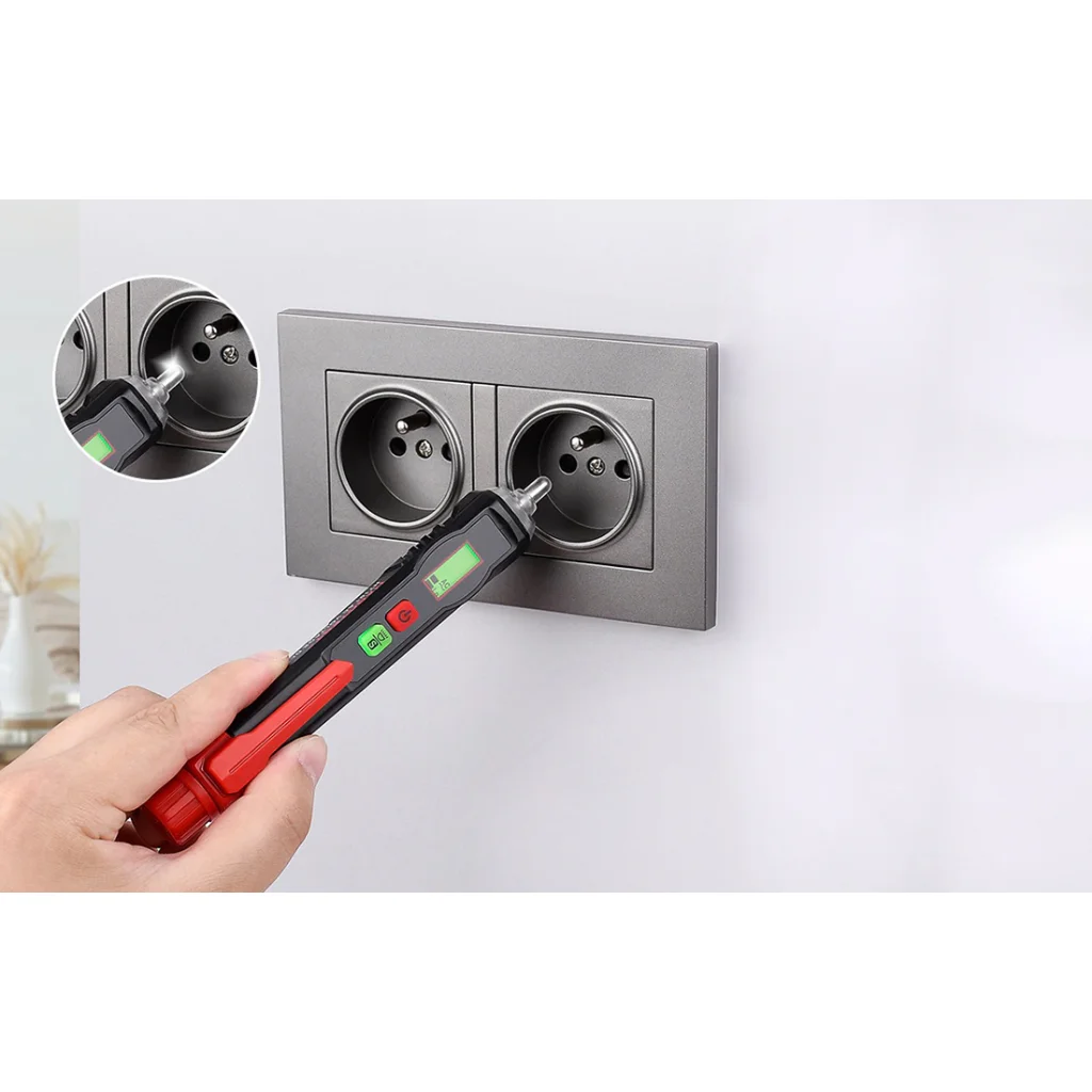 Az érzékelő intelligensen azonosítja az aktív és inaktív kábeleket. Kettős riasztóval rendelkezik - vizuális és hangjelzési formában. Egyszerűen helyezze az eszközt a vezeték felületéhez. A zöld színű kijelző és lassú hangjelzés inaktív kábelt jelez. A piros színű kijelző és nagyon gyors riasztás pedig aktív kábelt jelent.