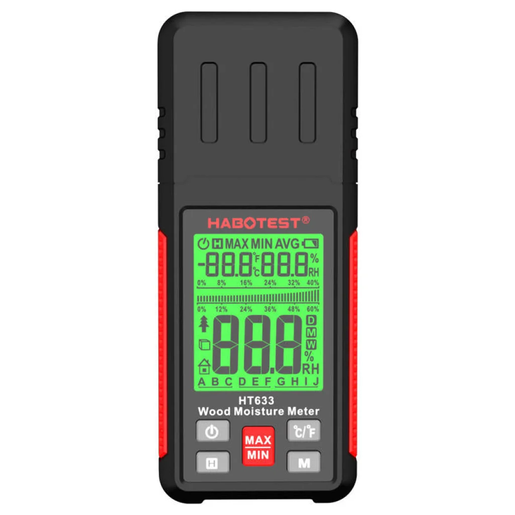 A készülék 2 tűvel rendelkezik, amelyek gyors és pontos méréseket biztosítanak - használhatja olyan anyagokhoz, mint fa, beton, vakolat és tégla. A Habotest HT633-al mérheti a páratartalmat és a környezeti hőmérsékletet is. Az LCD kijelző kényelmes hozzáférést biztosít az információkhoz szinte bármilyen körülmények között, és az alacsony, közepes vagy magas páratartalmat zöld, narancssárga vagy piros színekkel jelzi.