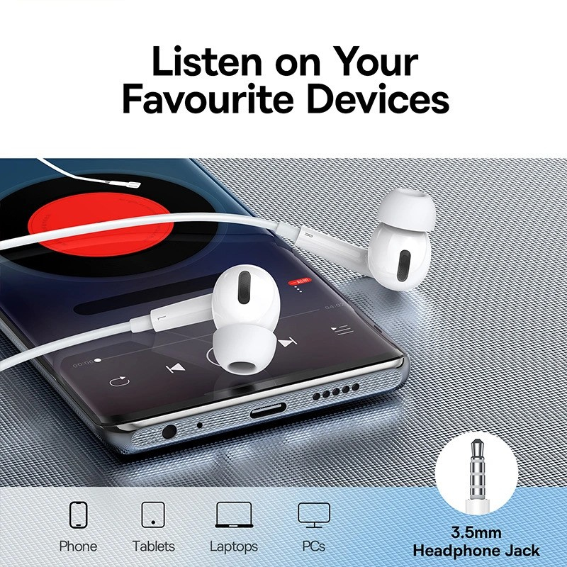 Élvezze a tiszta hangzást és a zökkenőmentes beszélgetéseket a Baseus Encok H18 vezetékes fülhallgatóval. A 3.5mm-es csatlakozóval, nagy érzékenységű mikrofonnal és beépített kezelőgombokkal felszerelt fülhallgató tökéletes mindennapi használatra. Az ergonómikus kialakítás biztosítja a stabil és kényelmes illeszkedést még hosszabb viselés során is, míg a beépített gombok megkönnyítik a hívások és a zene kezelését.