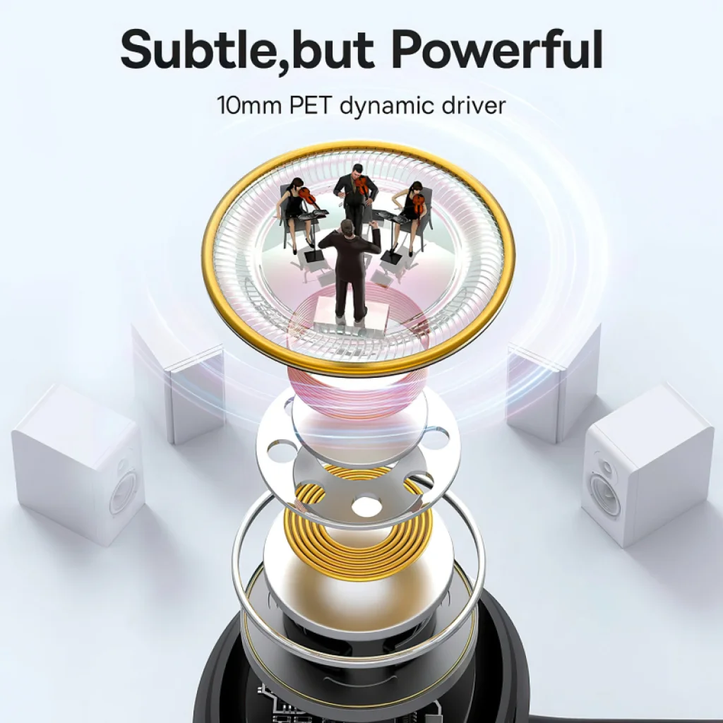 A 10 mm-es dinamikus PET meghajtó minimálisra csökkenti a minőségvesztést és a hangkésést. Ezek a vezetékes USB-C fülhallgatók mély basszust és kiegyensúlyozott tónusokat kínálnak, biztosítva az erőteljes és jól definiált hangot.
