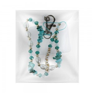 A gyöngyös medál lehetővé teszi, hogy kedvenc eszközét, például telefonját mindig kéznél tartsa, és más kiegészítőkkel is összhangba hozza. A kagyló medál kiváló társ a mindennapi tevékenységekhez. Műanyag elemekből készült, maga a zsinór 44 cm hosszúságú (22 cm hurokban) és elég tartós ahhoz, hogy hosszú évekig kitartson. Ezenkívül, ez a hosszúság lehetővé teszi, hogy kényelmesen viselje a medált a csuklóján, így kényelmes hozzáférést biztosít a telefonjához vagy más eszközhöz, amelyet magával szeretne vinni. A kampóval végződő medál lehetővé teszi a biztos rögzítést egy tokkal vagy tartóval ellátott telefonhoz. Egyszerűen csúsztassa a mellékelt kártyát a készülék és a tok közé, úgy hogy a kampó a töltőport közelében kilógjon. Ily módon rögzítve a medál biztonságosan tartja a telefont a zsinóron, így nem kell attól tartania, hogy lecsúszik vagy véletlenül leválik. Specifikációk: Anyag: műanyag Zsinór hossza: 44 cm Hurok hossza: 22 cm