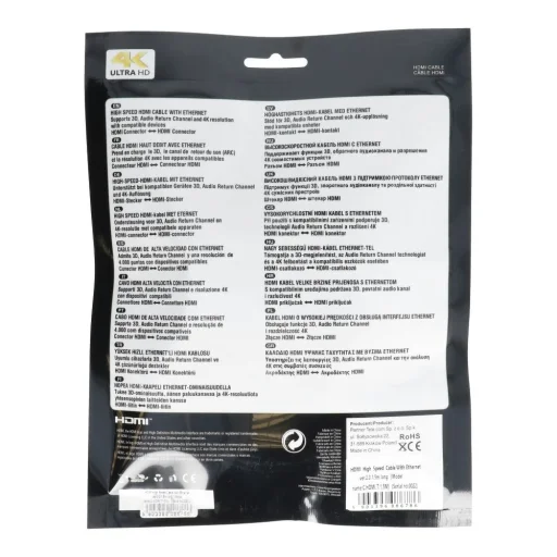 Interfész digitális audio- és videójelek továbbítására - HDMI High Speed 2.0 Ethernettel. Lehetővé teszi bármely megfelelő típusú csatlakozóval rendelkező eszköz könnyű csatlakoztatását külső monitorhoz, projektorhoz vagy HDMI bemenetű TV-hez. Az adapter sokoldalú használata lehetővé teszi filmek nézését, prezentációk megosztását és játékok játszását nagy képernyőn. A modern 2.0 szabvány maximális felbontást biztosít 4096 x 2160 p60 színmélységgel 48 bitig. Még jobb képminőség! A High Speed HDMI kábel Ethernettel támogatja a 4K felbontást akár 60Hz-ig. A hosszú kábel (elérhető verziók: 1,5 m, 3 m, 5 m) kényelmes használatot biztosít.