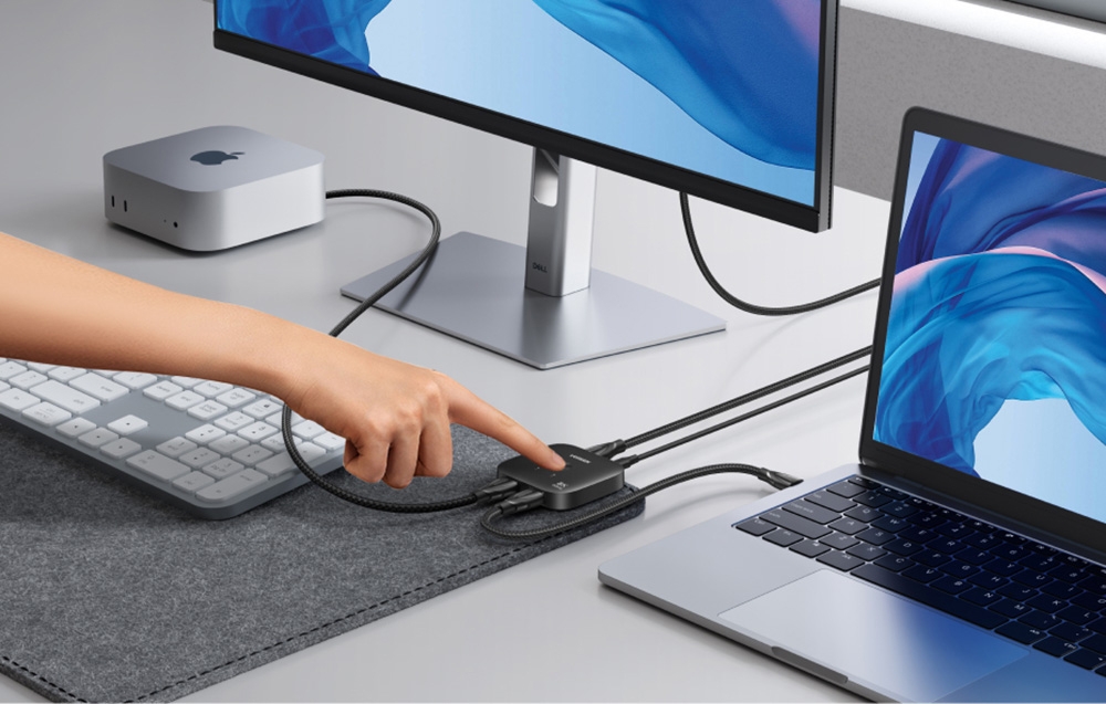 A készülék 2x1-es üzemmódban működik, ami azt jelenti, hogy két jelforrást csatlakoztathatsz egy kijelzőhöz. A váltás manuálisan történik egyetlen gombbal. Az eszköz USB-C portot használ tápellátásra, közvetlenül csatlakoztatható a legtöbb töltőhöz, tévékészülékek USB-portjaihoz vagy számítógéphez. LED-ek jelzik, hogy melyik eszköz aktív.