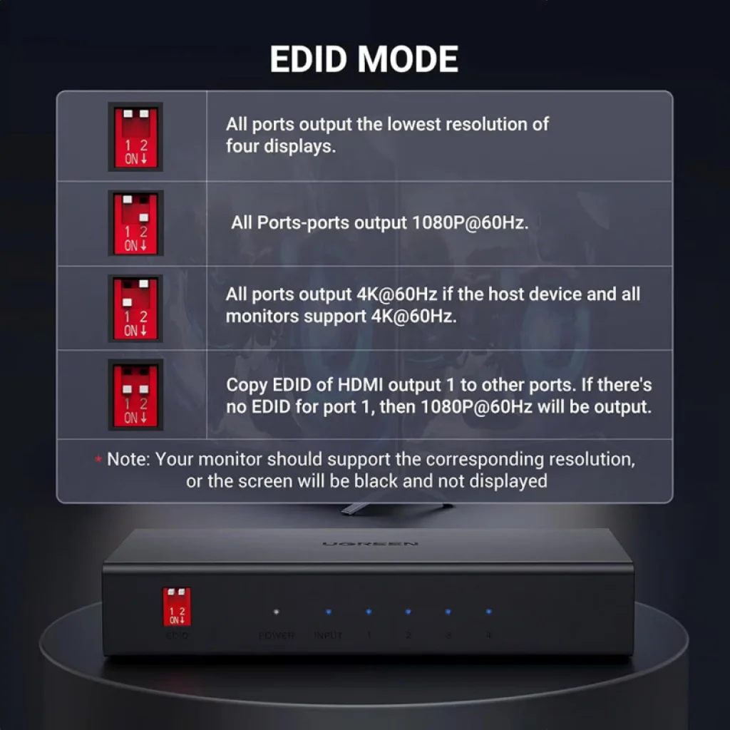 A Ugreen splitter lehetővé teszi, hogy ugyanazt a video- és hangjelet egy forrásból akár 4 TV-re vagy monitorra továbbítsa egyszerre.