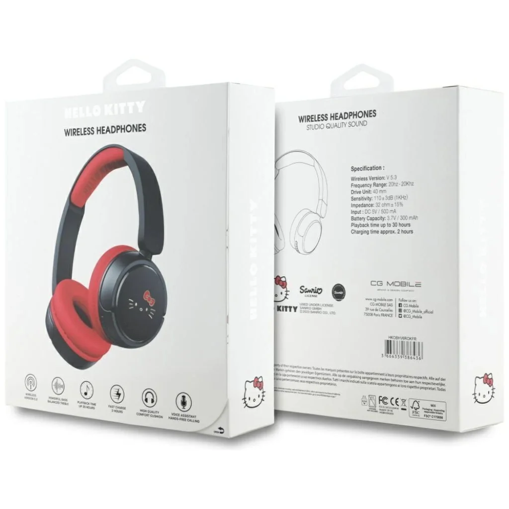 On-ear fejhallgatók Hello Kitty Face Logo Bluetooth. Egyedi megjelenés és kivételes minőség. A piros szín elegáns és minimalistát megjelenést kölcsönöz a fejhallgatóknak, míg a Hello Kitty képe rendkívüli bájt ad. Ez egy olyan ajánlat azok számára, akik nemcsak az exkluzív megjelenést értékelik az életben, hanem a magas minőséget és funkcionalitást is. Nélkülözhetetlen azok számára, akik értékelik a jó hangzást! A legújabb technológiák A fejhallgatók egy 300 mAh akkumulátorral vannak felszerelve, amely akár 30 órás működést biztosít egyetlen töltéssel. A teljes töltési idő csak 2 óra, így gyorsan előkészítheti a fejhallgatókat a további használatra. A töltés modern USB-C porton keresztül történik, amely kényelmet és magas töltési sebességet biztosít. Teljesítmény és funkcionalitás A fejhallgatók a Bluetooth 5.3 legújabb verziójával vannak felszerelve, amely stabil kapcsolatot és gyors párosítást biztosít az eszközökkel. A Bluetooth hatótávolsága akár 10 méter is lehet, így szabadságot és stabil kapcsolatot biztosít még nagyobb távolságokon is. A fejhallgatókat a Hello Kitty márka engedélyével gyártották. Műszaki adatok Típus: On-ear fejhallgatók Bluetooth verzió: 5.3 Fejhallgató akkumulátor: 3.7V / 300mAh Bluetooth kommunikációs távolság: akár 10 m Fejhallgató töltési idő: 2 óra Működési idő: akár 30 óra Fejhallgató töltő port: USB-C Frekvencia tartomány: 20Hz-20kHz Impedancia: 32ohm ± 16% Szín: Piros A készlet tartalma: Fejhallgatók, Használati utasítás, USB-C/USB-A kábel