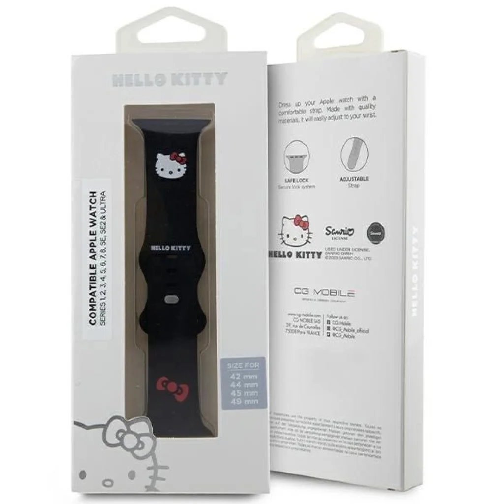 A Hello Kitty márkanévvel fémjelzett, bájos szíj az Apple Watch okosórához. Ez a nagyon kényelmes szíj az Apple Watch 42/44/45/49 mm átmérőjű tokjához készült. A szíj egyedi csuklóméretre állítható a patentos és hurkos rögzítéssel. A szíj a legmagasabb minőségű, puha és nagyon tartós szilikonból készült. A szilikon használata rendkívül ellenállóvá teszi a szíjat a sérülésekkel és az elszíneződéssel szemben, és nem okoz kellemetlenséget a bőrön a mindennapi használat során. A Szilikon Kitty Fej szíj több divatos színben is elérhető, így szinte bármilyen stílushoz illik és tökéletesen passzol bármelyik Apple Watch tokhoz, függetlenül annak színétől. A szíj kifejező színei egyedivé és hatásossá teszik ezt a kiegészítőt. Ez az egyedülálló szíj a híres Hello Kitty cica grafikájával van díszítve - használatával az Apple Watch egy irigylésre méltó dekorációvá válik bárki számára, aki értékeli a rendkívüli kiegészítőket. A termék a Hello Kitty márka licencével készült.