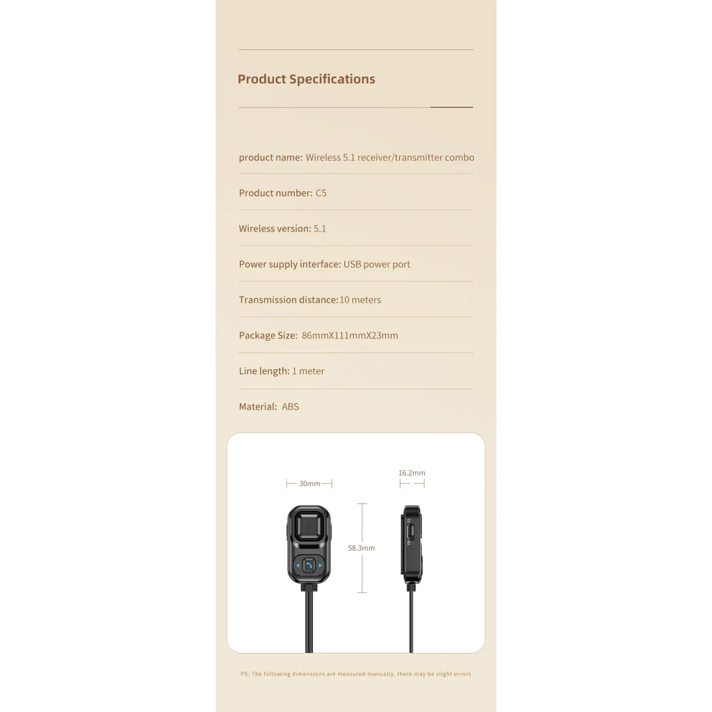 - 1x HIGI C5 Bluetooth 5.1 vezeték nélküli audió adapter