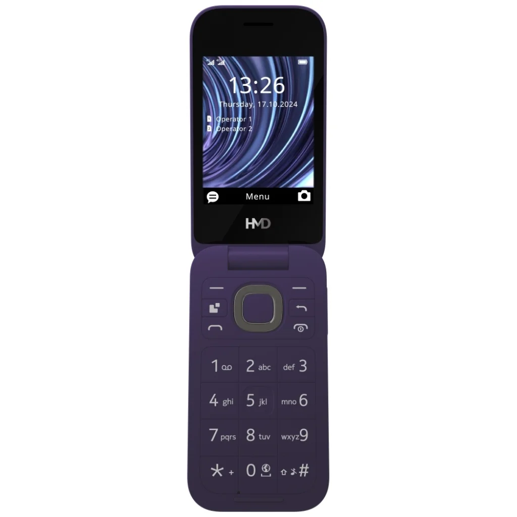 A HMD 2660 Flip egy klasszikus kinyitható telefon, amely eleganciát ötvöz a praktikummal. A burkolata tartós anyagokból készült, és a Mohs keménységi skála szerinti 4-es üveggel védett előlapja modern megjelenést biztosít, miközben ellenállóbbá teszi a mindennapi kopással szemben. A nagy, 2,8 hüvelykes fő kijelző és a 1,77 hüvelykes külső kijelző kiegészítése révén a telefon használata intuitív és kényelmes. A modell kettős SIM kártyával, LTE Cat1 technológiával és Unisoc T107 processzorral rendelkezik, ami biztosítja az alapvető funkciók stabil és gyors működését. Ez a telefon azoknak a felhasználóknak készült, akik értékelik a funkcionalitást és a klasszikus stílust.