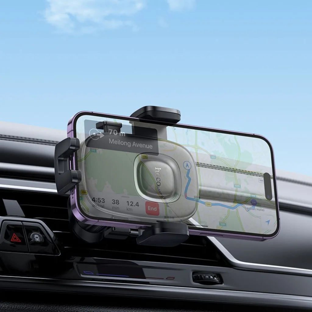 Univerzális Hoco autós tartó, amely a szellőzőre rögzíthető. Az állítható fejjel rendelkező kar 360°-os mozgástartománnyal lehetővé teszi, hogy tökéletesen beállítsd az eszköz helyzetét a saját igényeid szerint, függőlegesen vagy vízszintesen. Az állítható fejjel rendelkező kar lehetővé teszi, hogy az eszközt és a benne rögzített telefont a saját preferenciáid szerint állítsd be, függőlegesen vagy vízszintesen - így nem akadályozza a látást, és kényelmesen használható a navigáció. A szellőzőre rögzíthető kialakítás biztonságos használatot biztosít a telefonod számára vezetés közben. A speciális betétek a bilincsek belsejében védik az eszközt a karcolásoktól utazás közben. Specifikáció:
