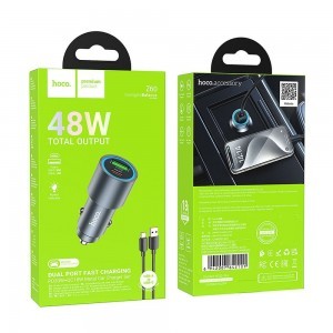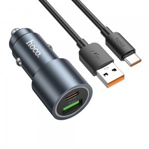 A Hoco Z60 autós töltő gyors töltési funkcióval és kettős kimenettel: USB-C, USB-A. Lehetővé teszi mobil eszközök gyors töltését az autóban. Tartalmaz egy 1 m-es USB-A - USB-C kábelt. A töltő fel van szerelve kettős USB-C (30 W) és USB-A (18 W) kimenettel, amely lehetővé teszi 2 eszköz egyidejű töltését. A termék támogatja a PD, QC3.0, FCP, AFC gyors töltést és más gyors töltési megoldásokat. Alumínium ötvözetből és PC-ből készült, a töltő rendkívül tartós és ellenáll a sérüléseknek. Az intelligens felismerés lehetővé teszi az áramerősség megfelelő eszközhöz való illesztését, biztosítva a biztonságos használatot. Tartalmaz egy 1 m-es USB-A - USB-C kábelt.