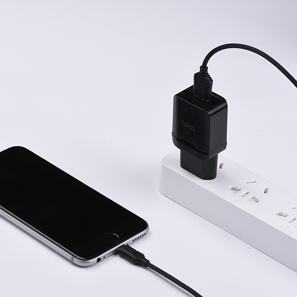 HOCO C22A Little Superior Hálózati iPhone töltő adapter és Lightning kábel fekete