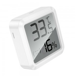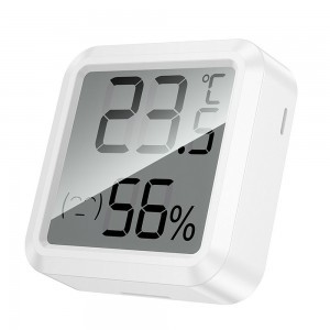 1. Anyag: ABS 2. Méret: 45 45 13mm; Súly: 24g 3. Kijelző: LCD kijelző 4. Elem: 200mAh/CR2032 5. Kijelzés: Beltéri páratartalom és hőmérséklet ugyanazon a képernyőn jelenik meg, 30 másodpercenként frissül
