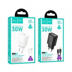 A Hoco N62 fali töltő USB-C porttal és 30W-os gyorstöltési támogatással. Tartalmaz egy 1 méteres USB-C - Lightning kábelt. A töltő támogatja a PD 30W gyorstöltési protokollt, QC3.0, FCP, AFC - lehetővé teszi a telefonok igazán gyors töltését. A 30W teljesítmény sokkal gyorsabb energiatranszfert tesz lehetővé rövidebb idő alatt, ami azt jelenti, hogy sokkal kevesebb időbe telik a készülék teljes feltöltése. A töltő USB-C porttal rendelkezik. Magas minőségű, tűzálló anyagokból készült. Alkalmas szabványos EU csatlakozókhoz. A töltő mellé egy 1 méteres USB-C - Lightning kábel tartozik.