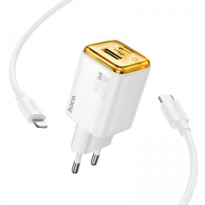 Hoco N52 fali töltő gyors töltési funkcióval és kettős kimenettel. Lehetővé teszi a mobil eszközök gyors töltését. Tartozik hozzá egy 1 méteres USB-C - Lightning kábel. A töltő kettős kimenettel van felszerelve: USB-C (20 W) és USB-A (18 W), amelyek lehetővé teszik 2 eszköz egyidejű töltését. A termék támogatja a gyors töltési szabványokat, mint a PD, QC 3.0, FCP, AFC és más gyors töltési megoldásokat. A PC anyagból készült töltő rendkívül tartós és ellenálló a sérülésekkel szemben. Az intelligens felismerés lehetővé teszi az áram illesztését az adott eszközhöz, biztosítva a biztonságos használatot. A töltőhöz tartozik egy 1 méteres USB-C - Lightning kábel. Specifikáció: