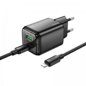 A Hoco N52 fali töltő gyors töltési funkcióval és kettős kimenettel rendelkezik. Lehetővé teszi a mobil eszközök gyors töltését. A csomag tartalmaz egy 1 méteres USB-C - Lightning kábelt. A töltő kettős kimenettel van felszerelve: USB-C (20 W) és USB-A (18 W), amelyek lehetővé teszik 2 eszköz egyidejű töltését. A termék támogatja a gyors töltési technológiákat: PD, QC 3.0, FCP, AFC és egyéb megoldásokat. PC-ből készült, a töltő rendkívül tartós és ellenálló a sérülésekkel szemben. Az intelligens felismerési funkció lehetővé teszi az aktuális áram beállítását a megfelelő eszközhöz, biztosítva a biztonságos használatot. A töltőhöz tartozik egy 1 méteres USB-C - Lightning kábel. Specifikáció: Portok: USB-C, USB-A Teljes kimeneti teljesítmény: 5 V / 3 A Teljesítmény: - USB-C 20 W (PD, QC 3.0, FCP, AFC) - USB-A 18 W (QC 3.0, FCP, AFC) Anyag: PC (tűzálló) Kábel: USB-C - Lightning 1 m Csatlakozó: EU Méret: 83 x 39.5 x 26.5 mm Súly: 70 g Gyorstöltési technológia támogatás: PD, QC 3.0, FCP, AFC