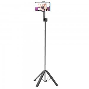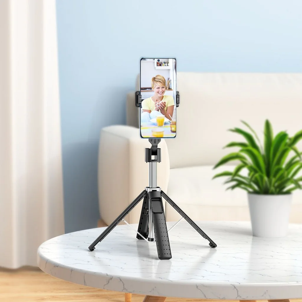 Selfie bot állvány funkcióval és vezeték nélküli távirányítóval. Tökéletes fényképezési rajongóknak. Segítségével megörökítheted életed legfontosabb pillanatait Magas minőségű rozsdamentes acélból és ABS-ből készült, ami hosszú távú és biztonságos használatot garantál. A kompakt méret és könnyű, összecsukható kialakítás megkönnyíti a selfie bot szállítását és tárolását. Állítható hosszúság: a rúd kihajtható, lehetővé téve a hosszúság egyéni igényekhez való igazítását. Ezen kívül három összehajtható lábbal rendelkezik, amelyek stabilitást biztosítanak és lehetővé teszik a fényképezést nagyobb távolságból. A hordozható távirányító lehetővé teszi a fényképek készítését anélkül, hogy tartanod kellene a botot. A termék Bluetooth technológiával csatlakozik az eszközhöz.