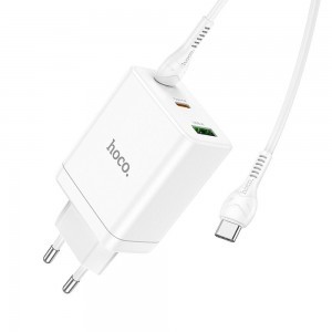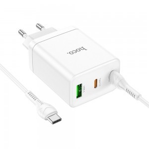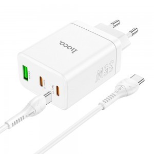 A Hoco fali töltő gyors töltési funkcióval és három porttal rendelkezik: 2 USB-C és USB-A. Lehetővé teszi a mobil eszközök gyors töltését. Tartozék egy 1 méteres USB-C - USB-C kábel. A töltő három porttal van felszerelve: 2 USB-C (35W) és USB-A (22,5W), ami lehetővé teszi, hogy egyszerre 3 eszközt töltsön. A termék támogatja a PD, QC 3.0, PPS, FCP, AFC és más gyors töltési megoldásokat. Lángálló PC-ből készült, a töltő rendkívül tartós és ellenálló a sérülésekkel szemben. Az intelligens felismerés lehetővé teszi, hogy az áramot az adott eszközhöz igazítsa, biztosítva a biztonságos használatot. A töltő 1 méteres USB-C - USB-C kábellel érkezik.