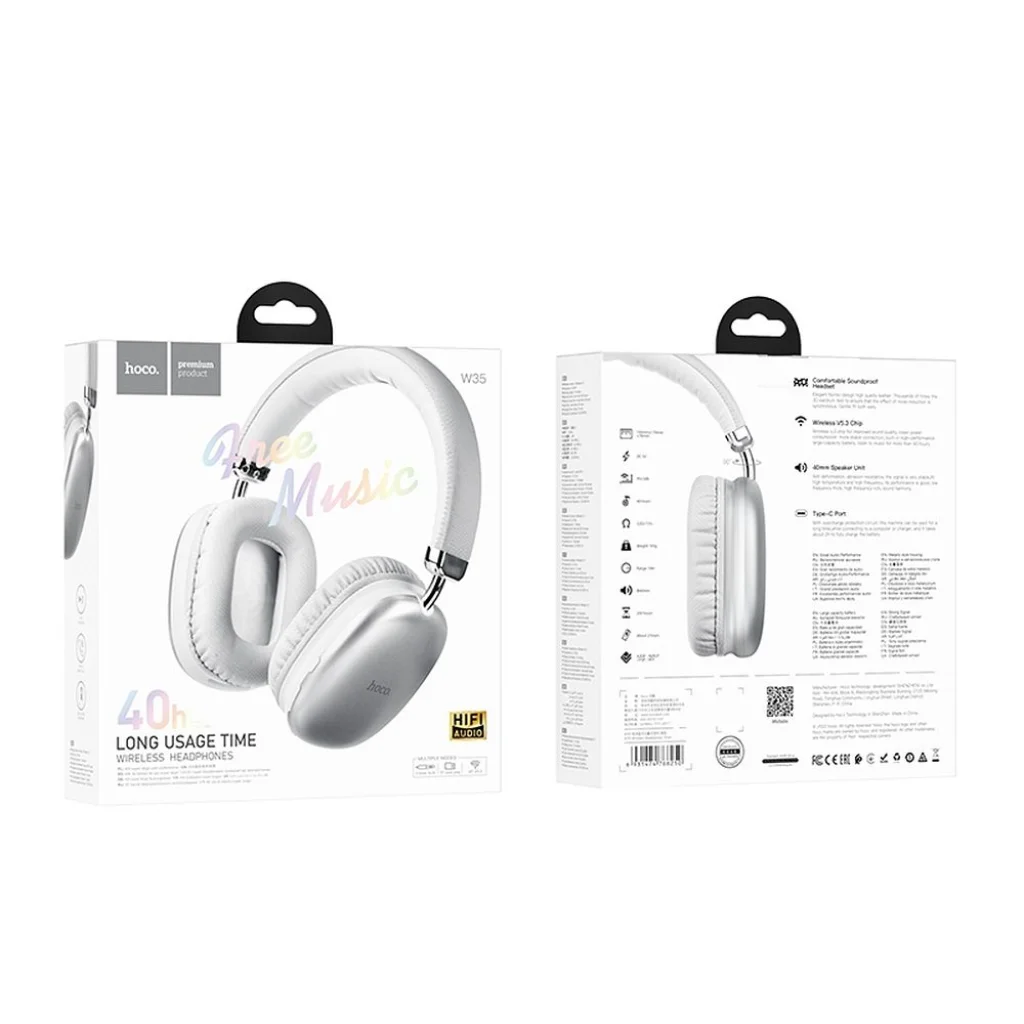 A HOCO Promise W35 hordozható Bluetooth fejhallgató magas minőségű, tiszta hangzást biztosít mély basszussal. Az összecsukható dizájn megkönnyíti a fejhallgató szállítását és tárolását egy táskában vagy hátizsákban. A Bluetooth vezeték nélküli átvitel lehetővé teszi, hogy kábel nélkül élvezze kedvenc zenéit kiváló minőségben. A kényelmes fülpárnák órákon át tartó zenehallgatást tesznek lehetővé kényelmetlenség érzet nélkül. Az állítható kialakításnak köszönhetően a fejhallgató egyszerűen személyre szabható az egyéni igényekhez. A beépített gombbal szabályozhatja a lejátszott hangot. TF kártya foglalattal és AUX bemenettel is felszerelt. Műszaki adatok: Hangszóró: 40 mm Bluetooth verzió: V5.3 JLAC7006 Töltési idő: kb. 2 óra Kapcsolódási / zeneidő: 40 óra Készenléti idő: 200 óra Akkumulátor kapacitás: 400 mAh Méret: 193 170 76 mm Tömeg: 193 g