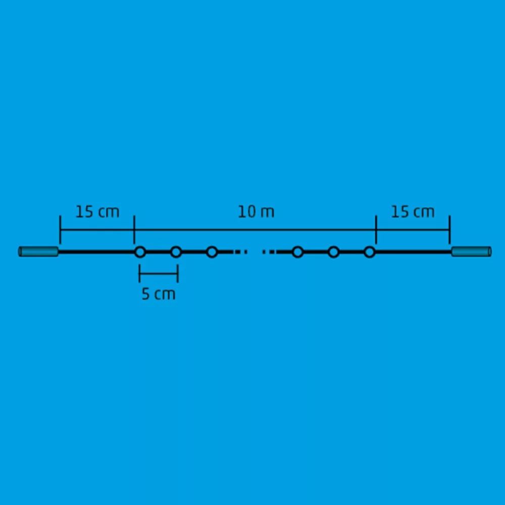 Ez a 10 méteres hosszúságú fényfüzér 200 db hidegfehér LED-del van ellátva, amelyek állófényű ragyogása tiszta és megnyugtató atmoszférát teremt. A fehér vezetékkel felszerelt fényfüzér kifinomult megjelenést biztosít, könnyen illeszkedve bármilyen stílusú térbe. A LED-es fényfüzér kiválóan alkalmas kül- és beltéri használatra egyaránt, így bármely területet, legyen az a kert, a terasz, vagy a nappali, könnyedén díszíthet vele.