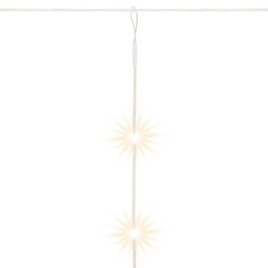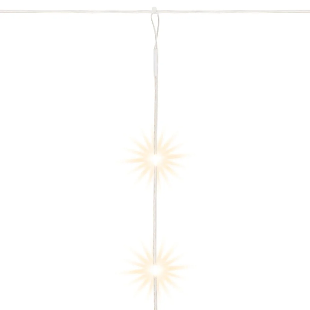 Ez a fényfüggöny állófényű, vagyis nem villog, nem vált fénytípust, hanem egyenletes, nyugtató melegfehér fénnyel világít. A 10 különböző hosszúságú LED-füzér (5/4/5/6/5/4/5/6/4/6) finom ritmust alkot, mely még dinamikusabbá teszi az összhatást. Az áttetsző vezeték szinte láthatatlan marad a sötétben, így a figyelem kizárólag a fénypontokra irányul.