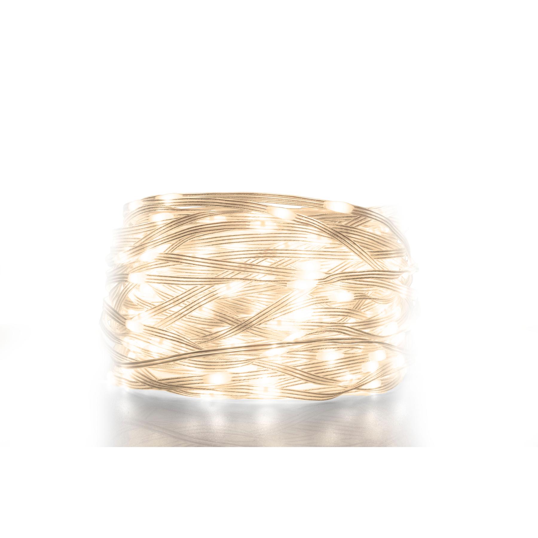 A melegfehér LED-ek 7 cm-es távolságban sorakoznak a 70 méteres átlátszó vezetéken, amely tökéletesen beleolvad bármilyen háttérbe, így csak a fények kapnak hangsúlyt. A további 5 méteres tápkábel elegendő mozgásteret biztosít az elhelyezéshez, legyen szó karácsonyfa díszítésről, falra rögzítésről vagy polc alatti dekorációról.