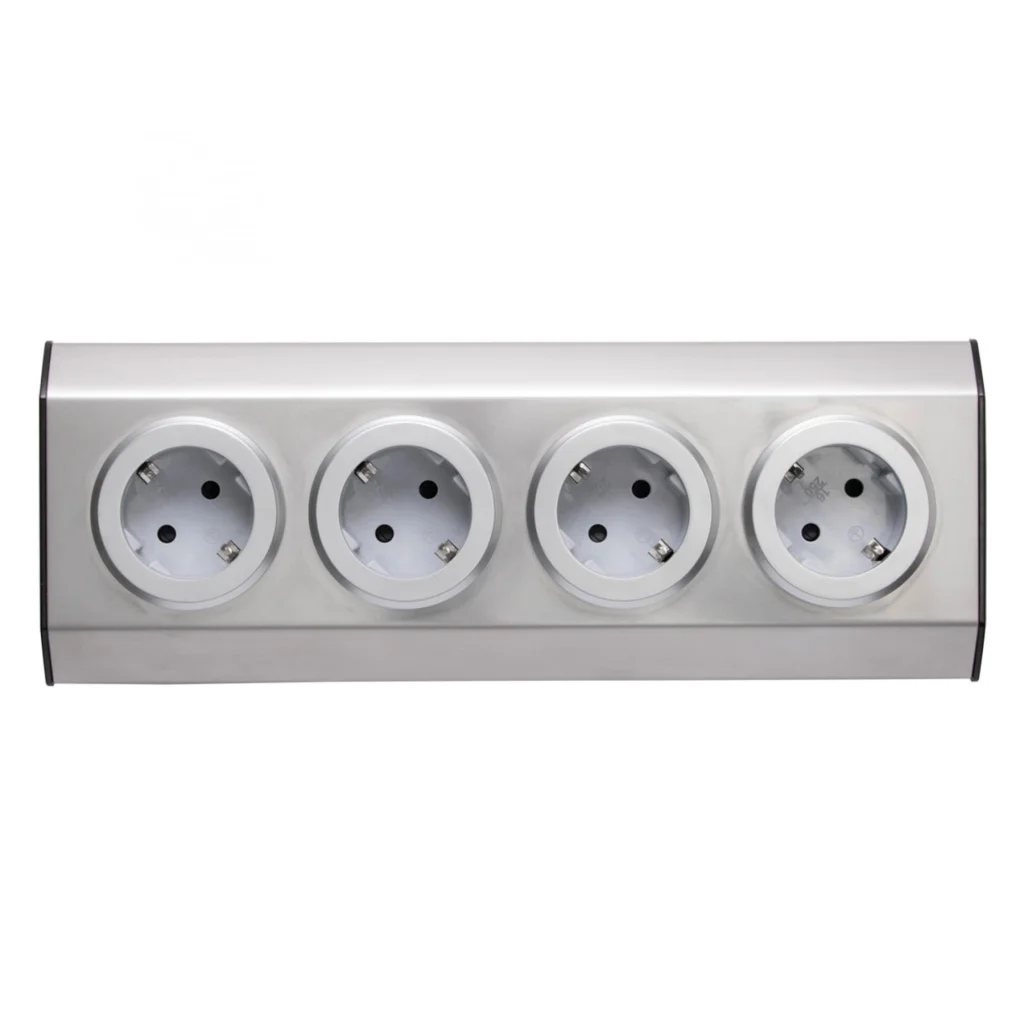 A KNV 04 Szerelhető konyhai elosztó rozsdamentes acél kivitelben készült, 4 db földelt aljzattal. A biztonságos használat érdekében gyermekvédelemmel ellátott. Maximum 3680 W-ig terhelhető. Praktikus kialakításának köszönhetően elhelyezheti vízszintesen vagy függőlegesen falra, sarokba, pultra, de akár felső szekrény alá is konyhájában. Rögzítheti öntapadós tépőzárral vagy csavarokkal.