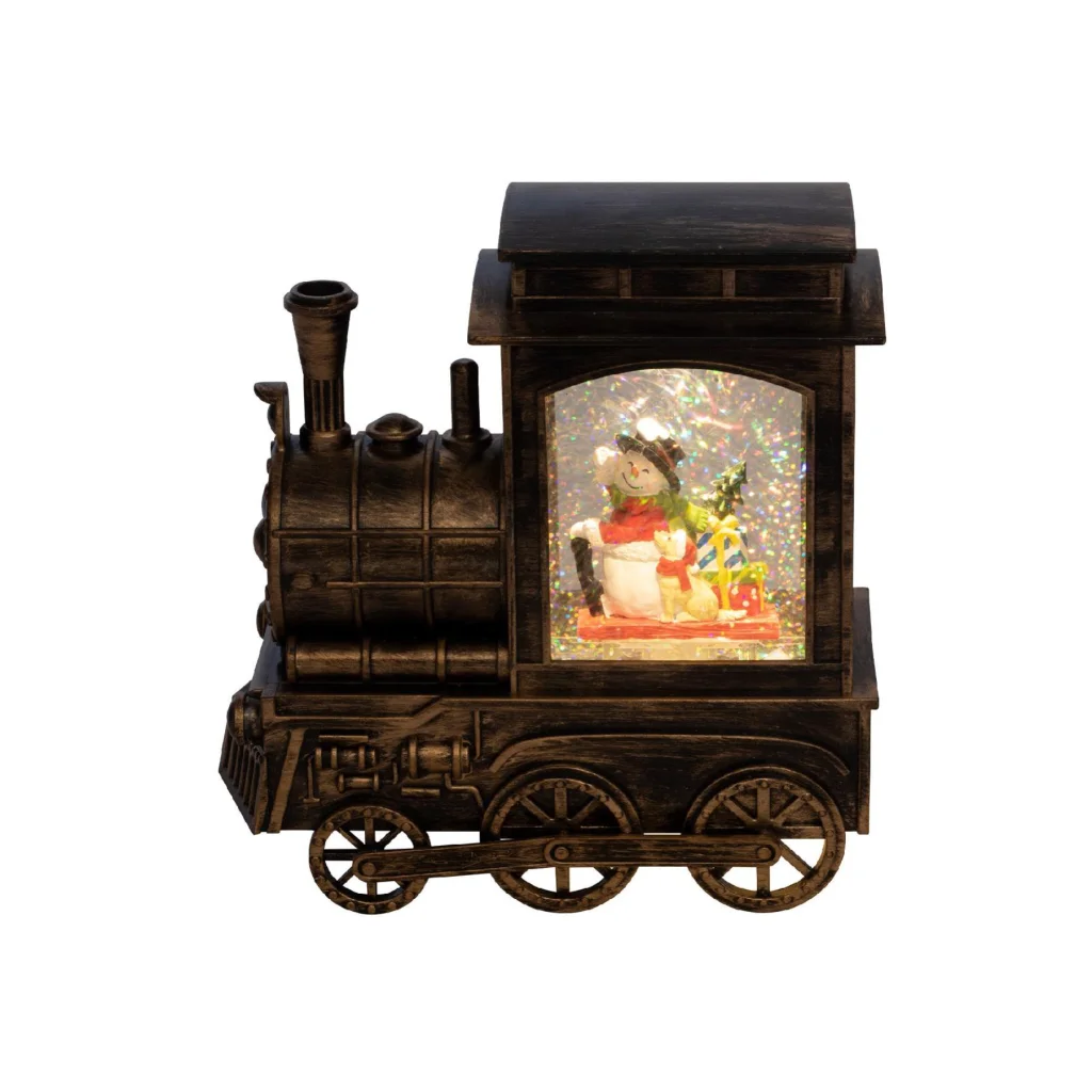 Ez a beltéri kivitelű lámpa egy mozdony formájú, műanyagból készült, és melegfehér LED világítást biztosító lámpás. A csillámok a vízkeverés hatására mozognak, így teremtve csodálatos és elvarázsoló látványt.