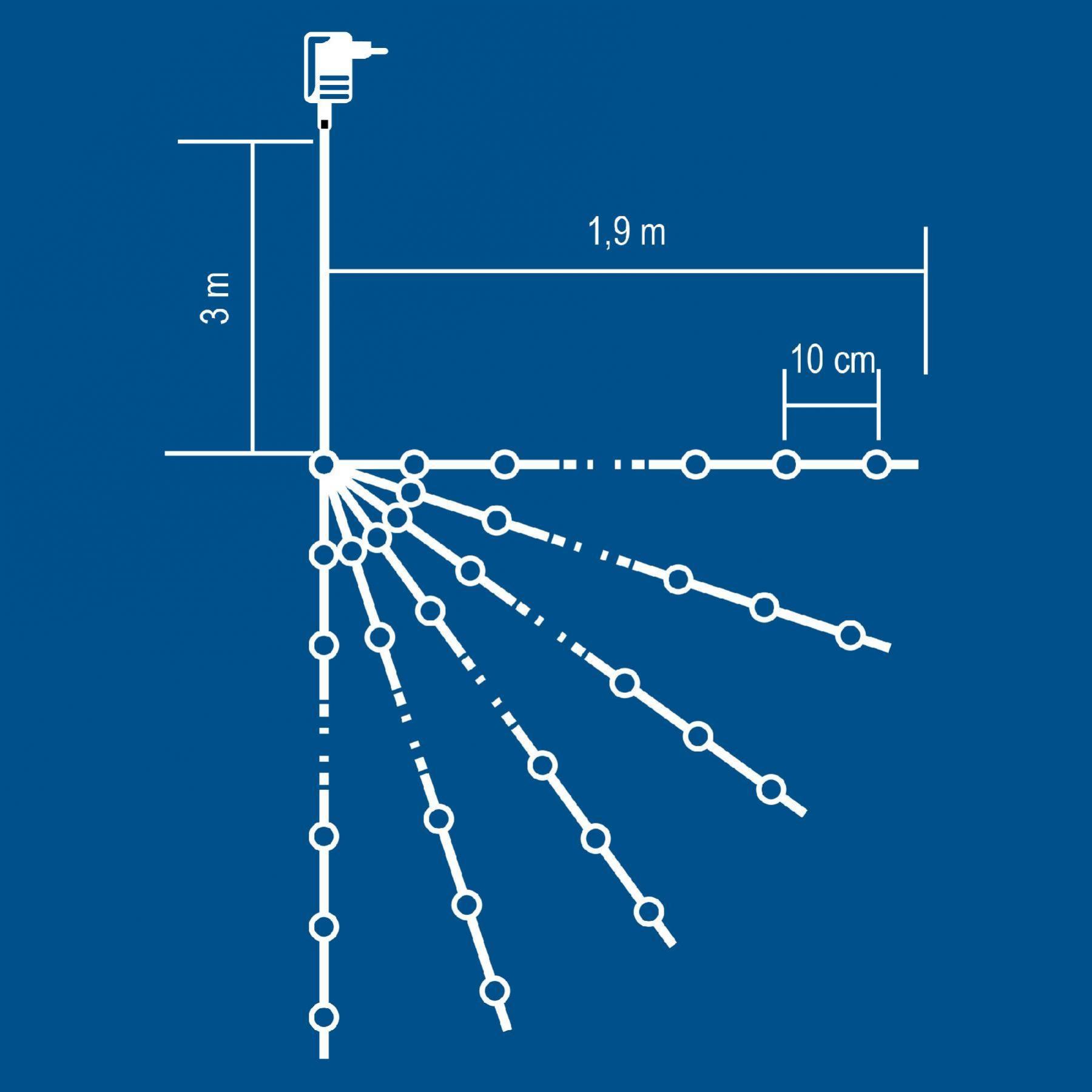 A 120 fényesen ragyogó, melegfehér színhőmérsékletű pontszerű micro-LED lehetővé teszi, hogy a fények tökéletesen passzoljanak a pillanathoz. Az ezüst színű, vékony vezeték segítségével könnyedén, szűkös helyen is rögzítheti a fénysort. Az ML 120/WW kültéri IP44-es szabványú hálózati adapterrel működik, és a 6 füzér mérete egyenként 1,9 méter.