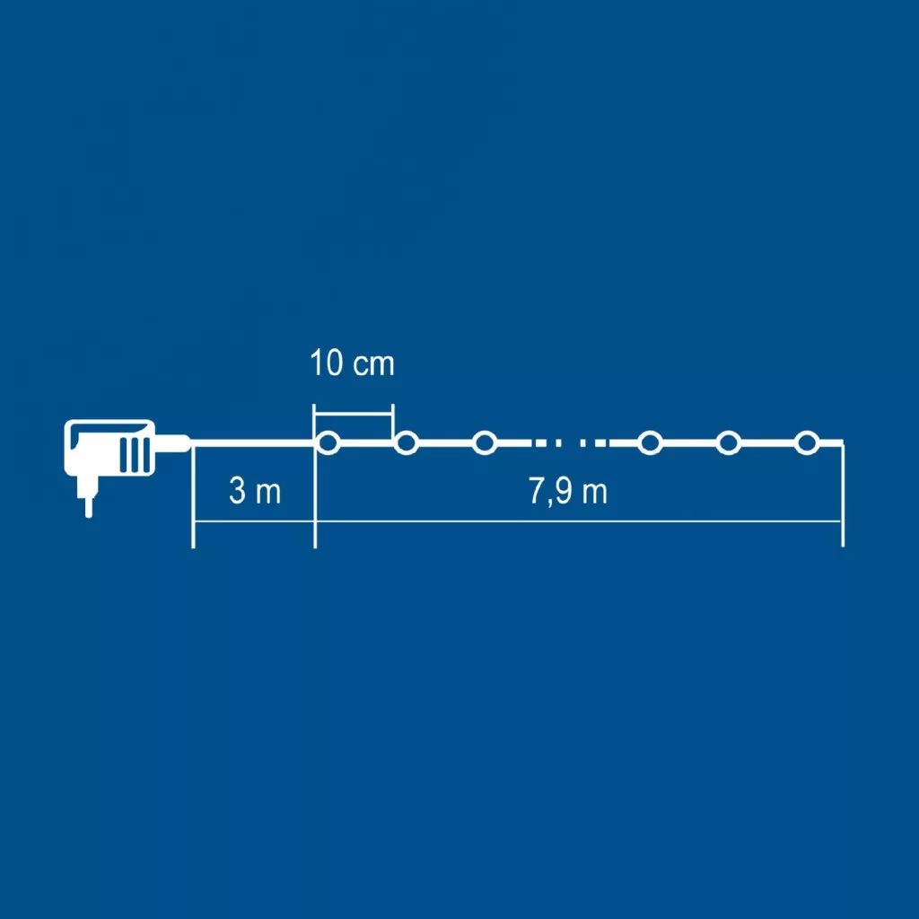 A 7,9 méter hosszú fényfüzér 80 darab hidegfehér, ragyogó micro LED-et tartalmaz, amelyek gyönyörű, állandó fényükkel feldobják bármelyik helyiséget vagy kertet. A vékony, diszkrét vezeték lehetővé teszi, hogy a fények szinte lebegjenek a térben, ezáltal minden dekorációhoz tökéletesen illeszkedik. A tápellátást biztosító IP44 kültéri hálózati adapter garantálja, hogy a fényfüzér ellenálljon az időjárás viszontagságainak, így bátran használhatja a szabadban is.