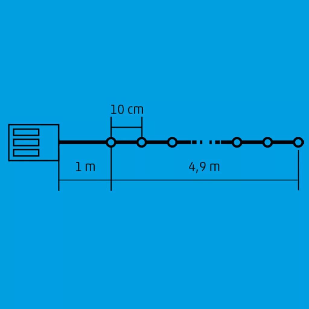 Az elemes tápellátás (3 db 1,5 V-os AA elem, nem tartozék) szabadságot ad abban, hogy bárhol elhelyezze, anélkül hogy a konnektorhoz kötött lenne. A fényfüzér kül- és beltéri kivitele garantálja, hogy bármilyen időjárási körülmények között használható legyen, így tökéletes választás az otthon díszítésére, teraszra, kertbe vagy erkélyre is. A 4,9 méteres hosszúság ideális méretet biztosít, hogy nagyobb terekben is látványosan érvényesüljön.
