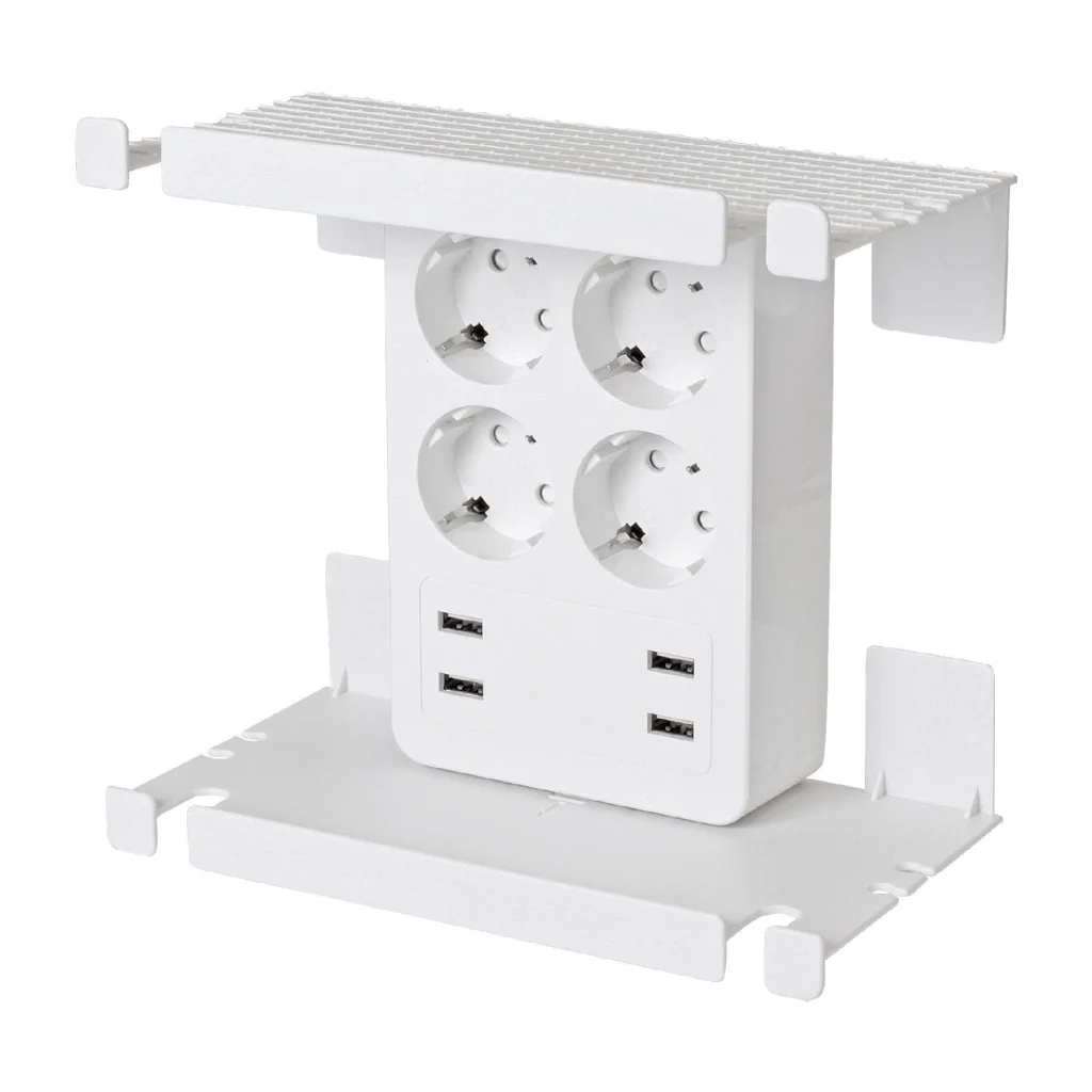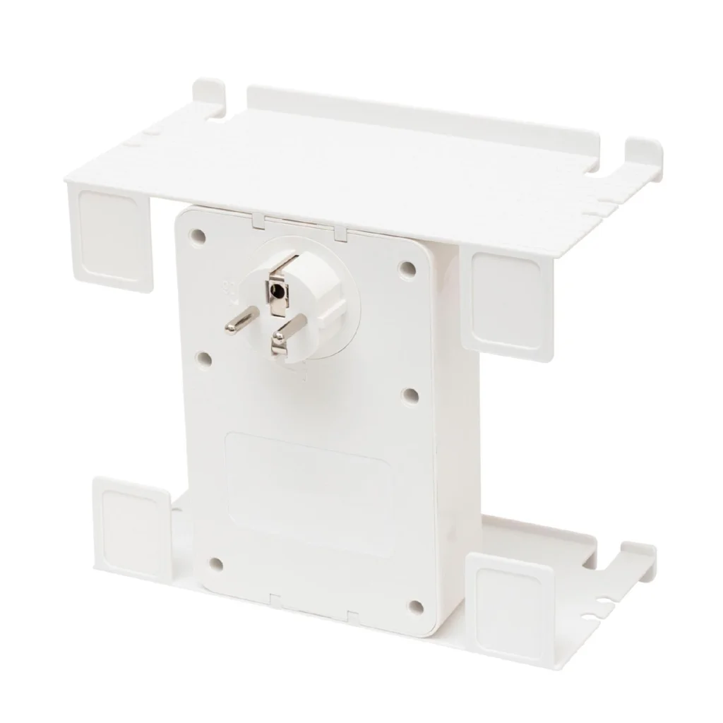 Az elosztó fali aljzathoz csatlakoztatható, és alulra, valamint felülre rögzíthető tárolótálcákkal van ellátva, amelyek segítenek rendben tartani a kisebb eszközöket és kiegészítőket.