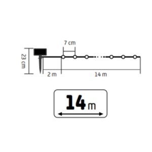 - 14 méter hosszú fényfüzér, 2 méteres tápvezetékkel