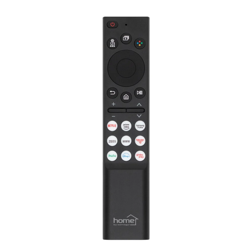 A Home URCSAM3 távirányító kifejezetten Samsung okos TV készülékekhez készült, hogy a televíziózás élményét könnyebbé és kényelmesebbé tegye. Az előre kódolt rendszer garantálja, hogy az eszköz azonnal használatra kész legyen, így Önnek nincs szüksége időigényes beállításokra. Csupán helyezzen bele két darab AAA elemet (nem tartozék), és máris irányíthatja televízióját.