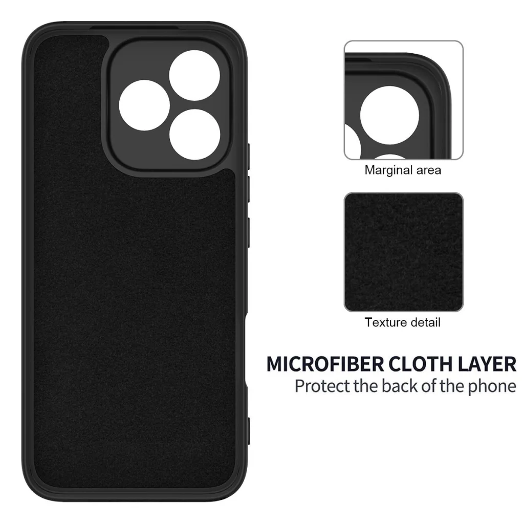 • Puha mikroszálas belső bélés: A tok belseje puha mikroszálas anyaggal van bélelve, amely kíméletesen óvja a telefon hátlapját a karcolásoktól és a portól, miközben további ütéselnyelő réteget képez.
